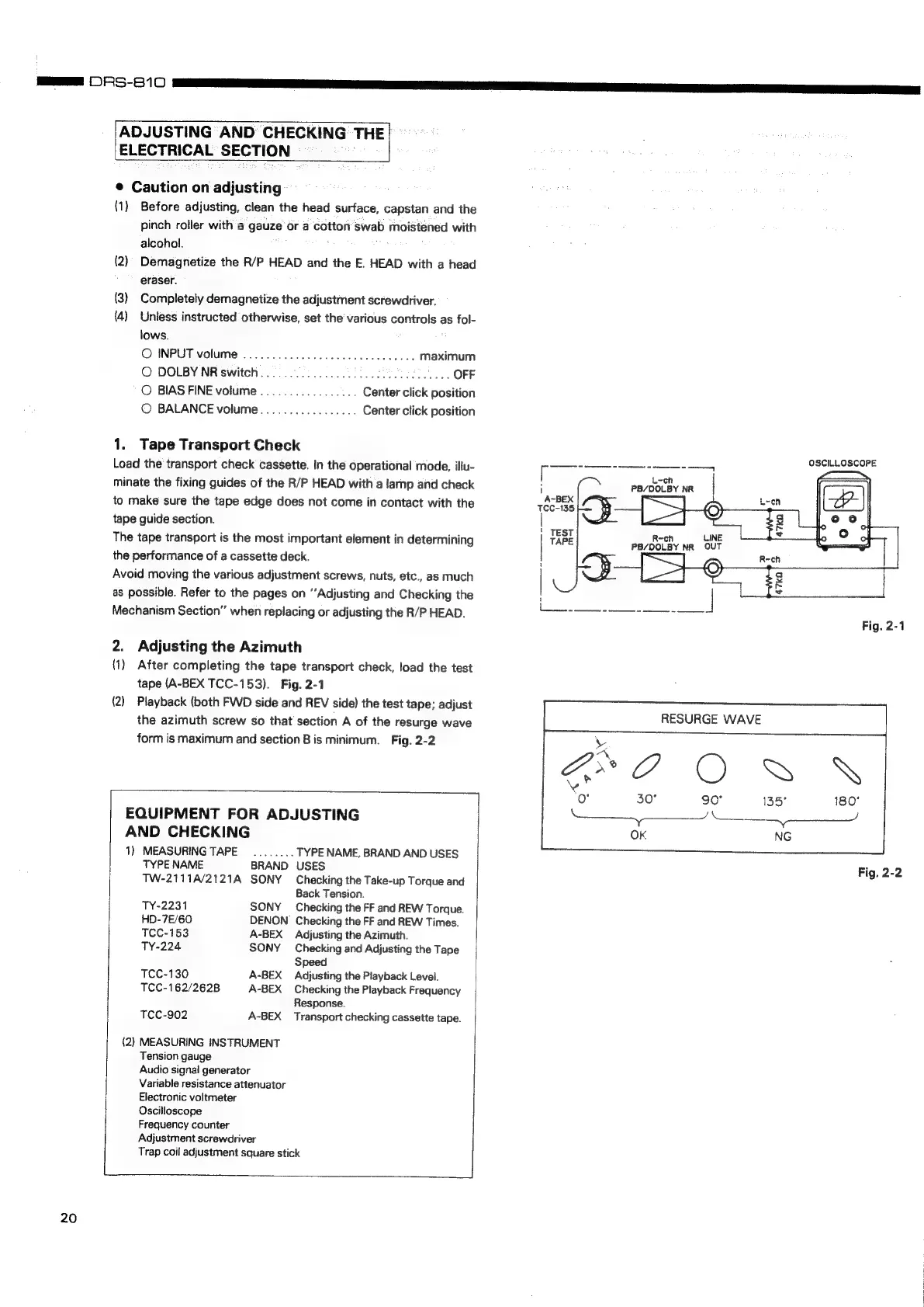 Denon DRS-810 - Electrical Section Adjustments and Checks; General Adjustment Precautions; Tape Transport and Azimuth Adjustments