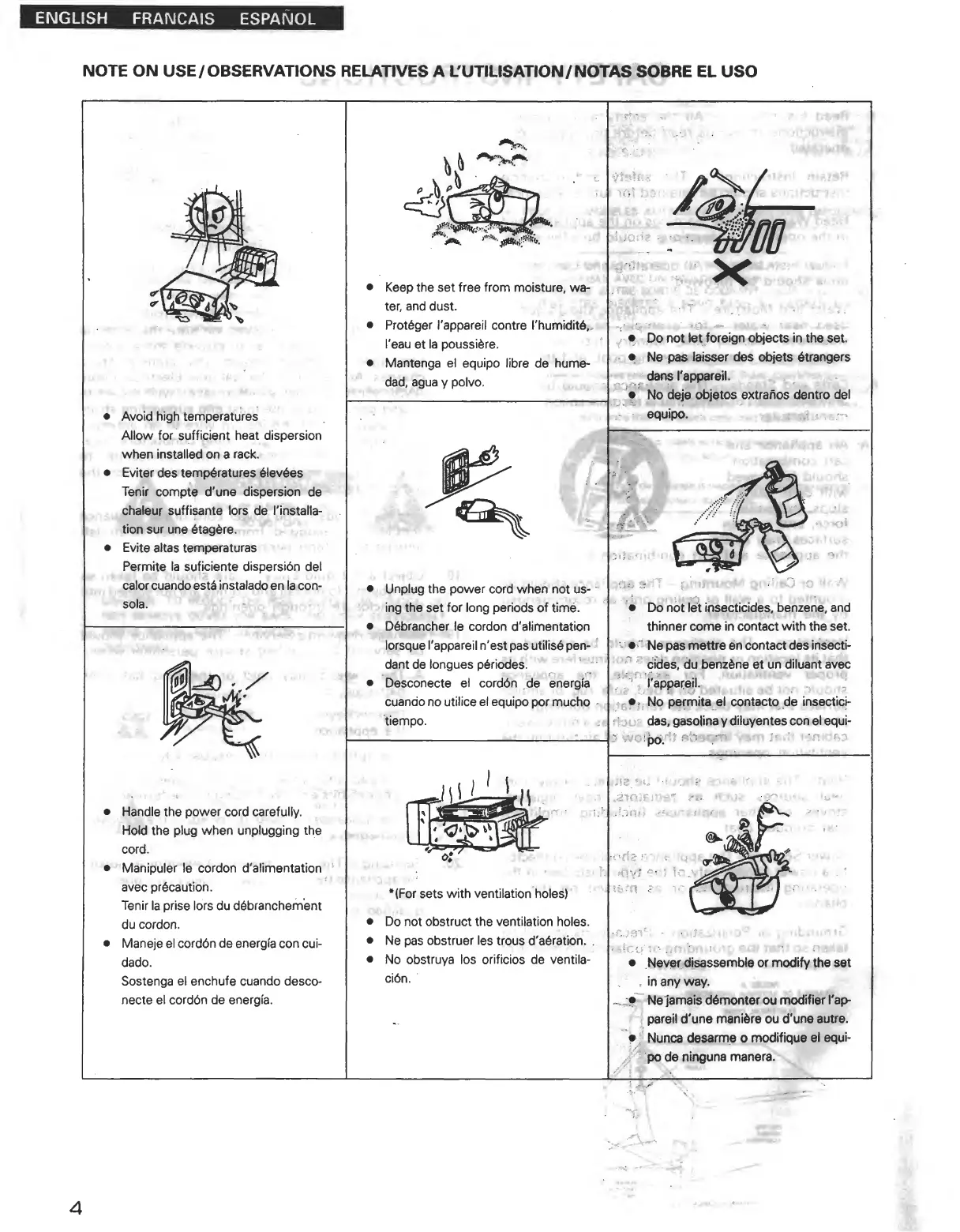 Denon DRW-585 - Usage and Handling Precautions; Environmental Considerations; Operational Safety Notes; Maintenance and Storage Advice
