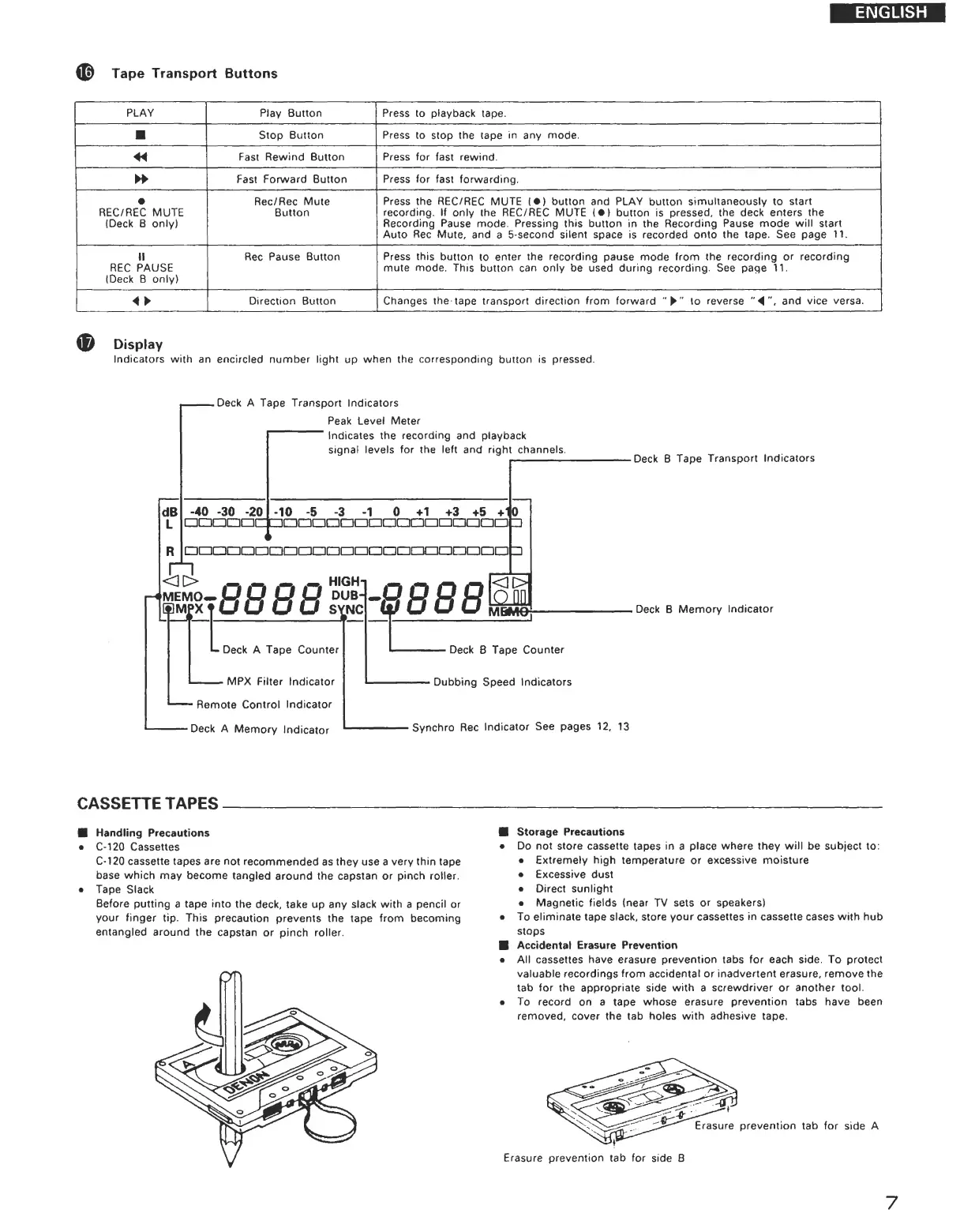 Denon DRW-585 - Tape Transport and Display; Tape Transport Button Functions; Display Indicators Explained