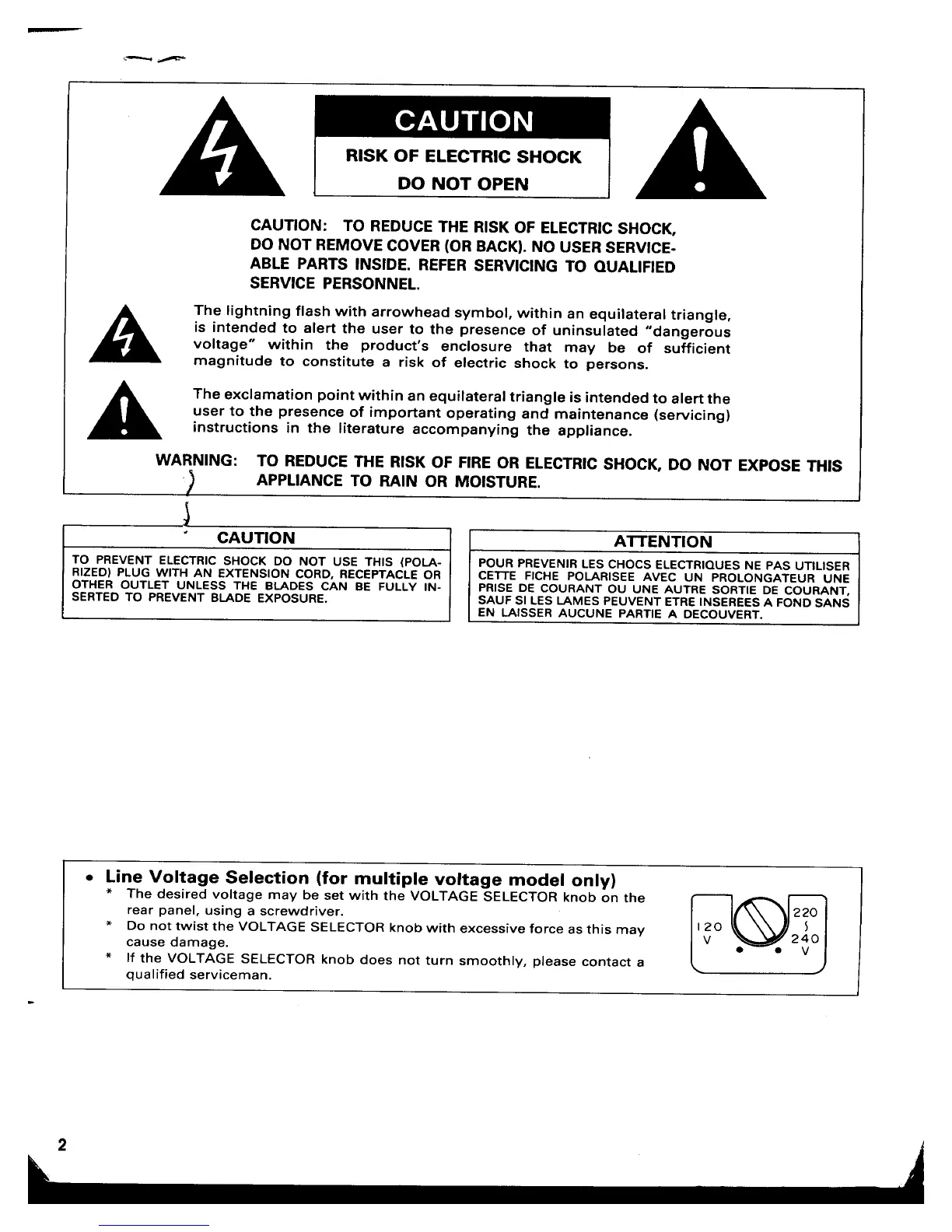 Denon DTR-80P - Safety Precautions and Electrical Information; Electrical Safety Warnings; Line Voltage Selection Guide
