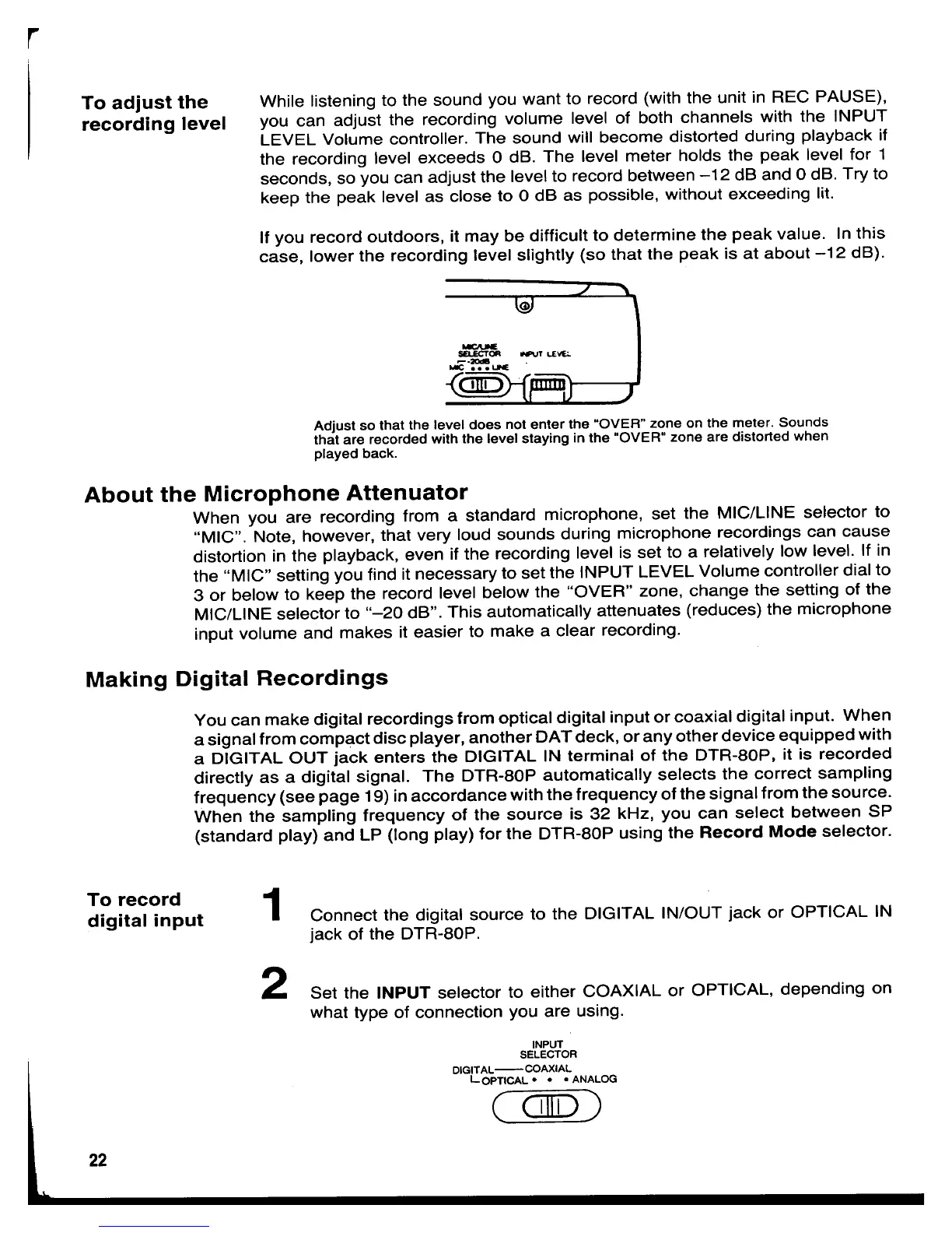 Denon DTR-80P - Recording Level and Microphone Input; Setting Optimal Recording Level; Microphone Attenuator Function