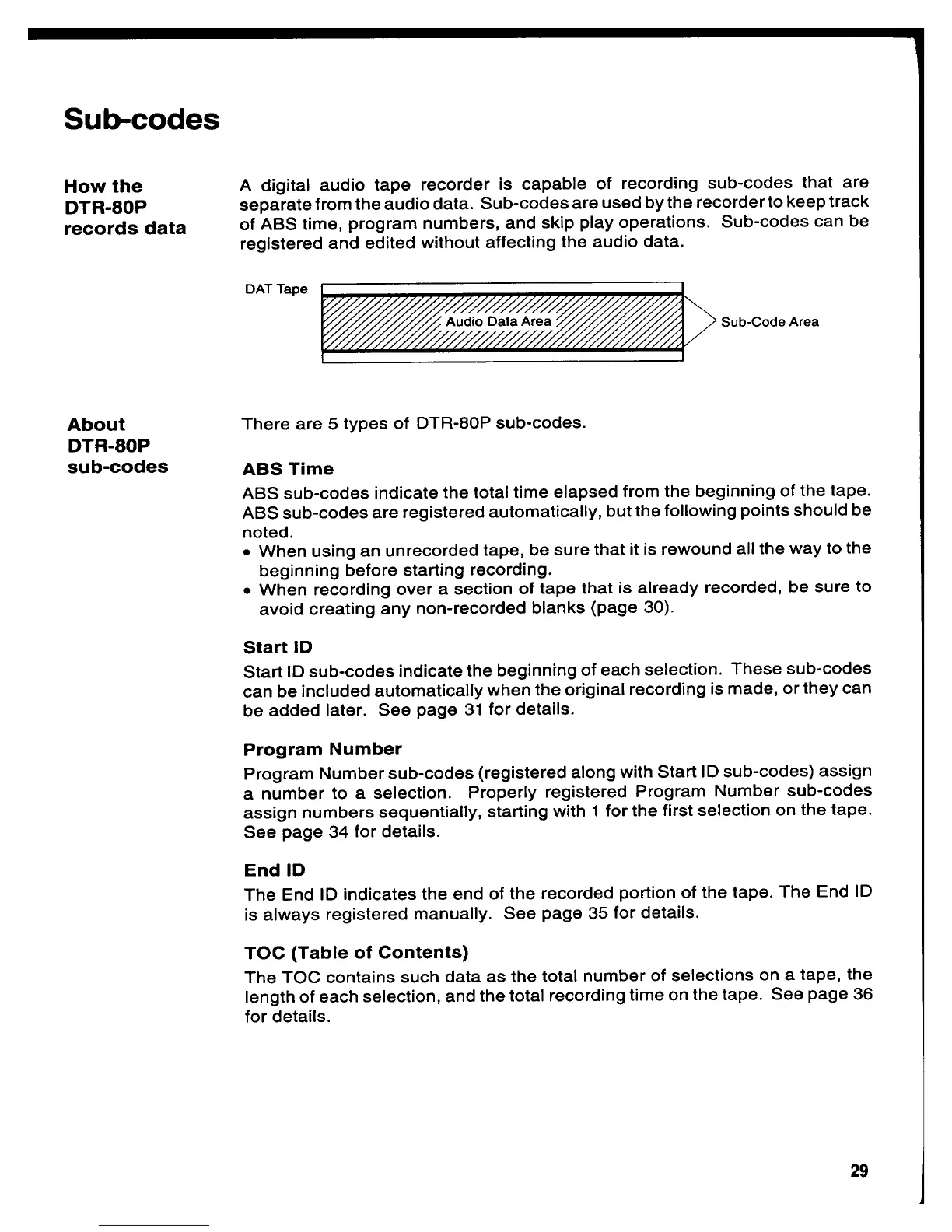 Denon DTR-80P - Understanding Sub-codes; Sub-code Recording Process; Types of DTR-80 P Sub-codes