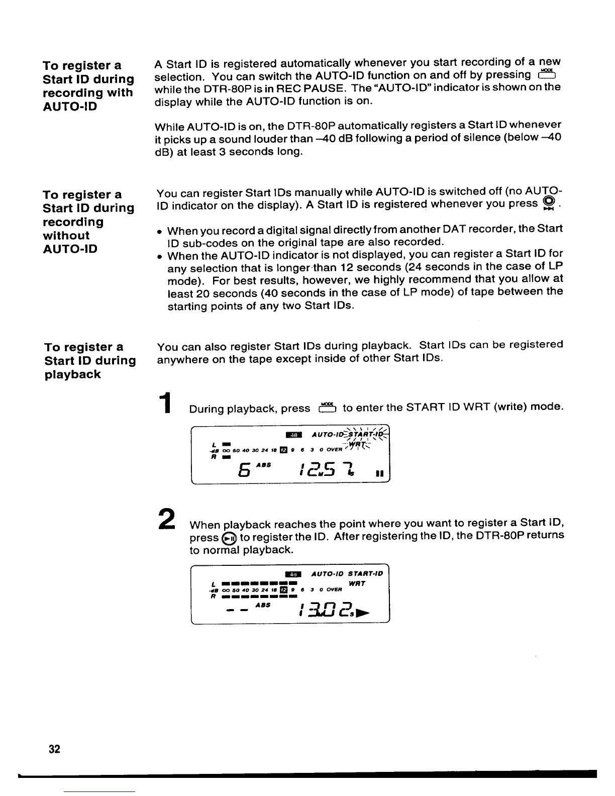Denon DTR-80P - Manual and Automatic Start ID Registration; Automatic Start ID Recording; Manual Start ID Registration