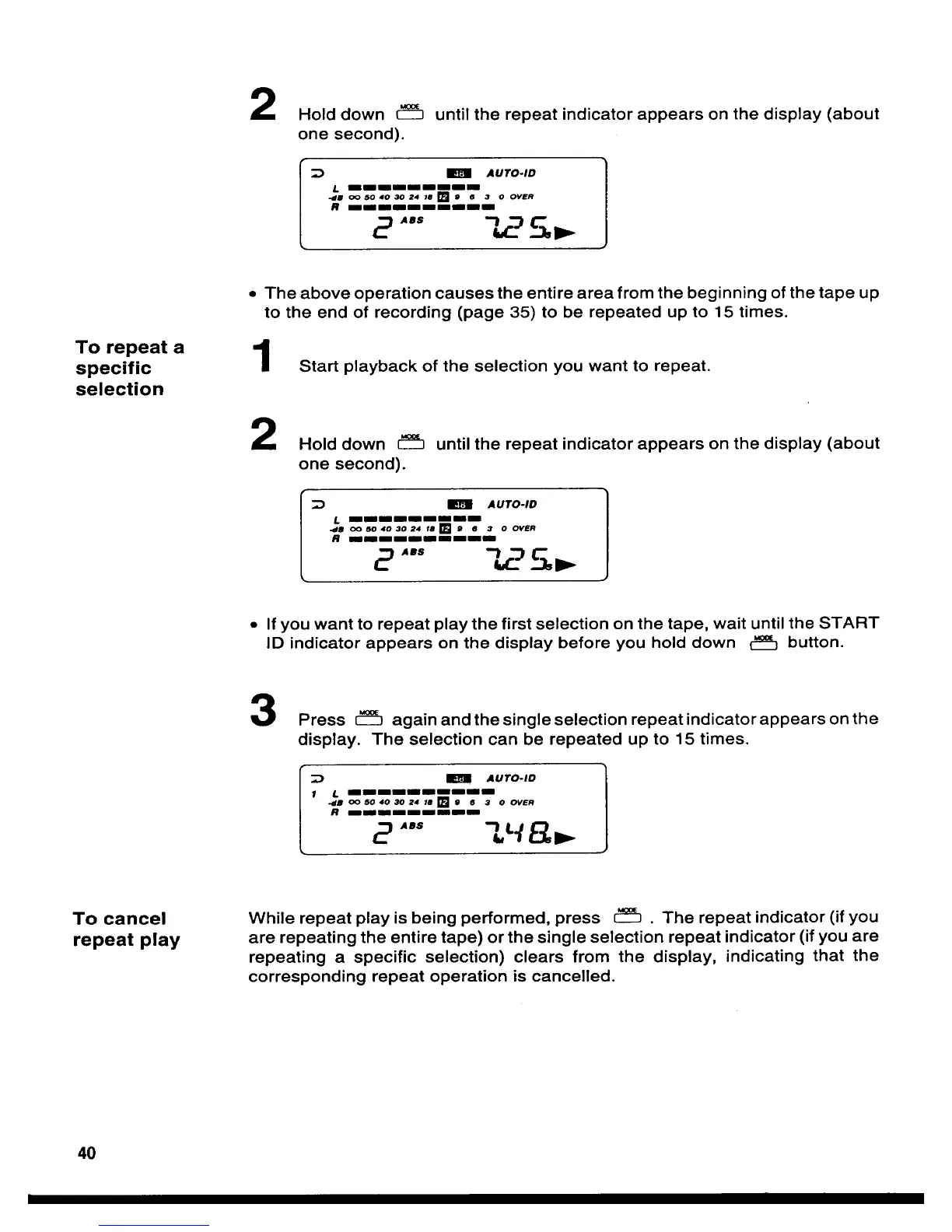 Denon DTR-80P - Managing Repeat Play; Repeating Specific Selections; Cancelling Repeat Play