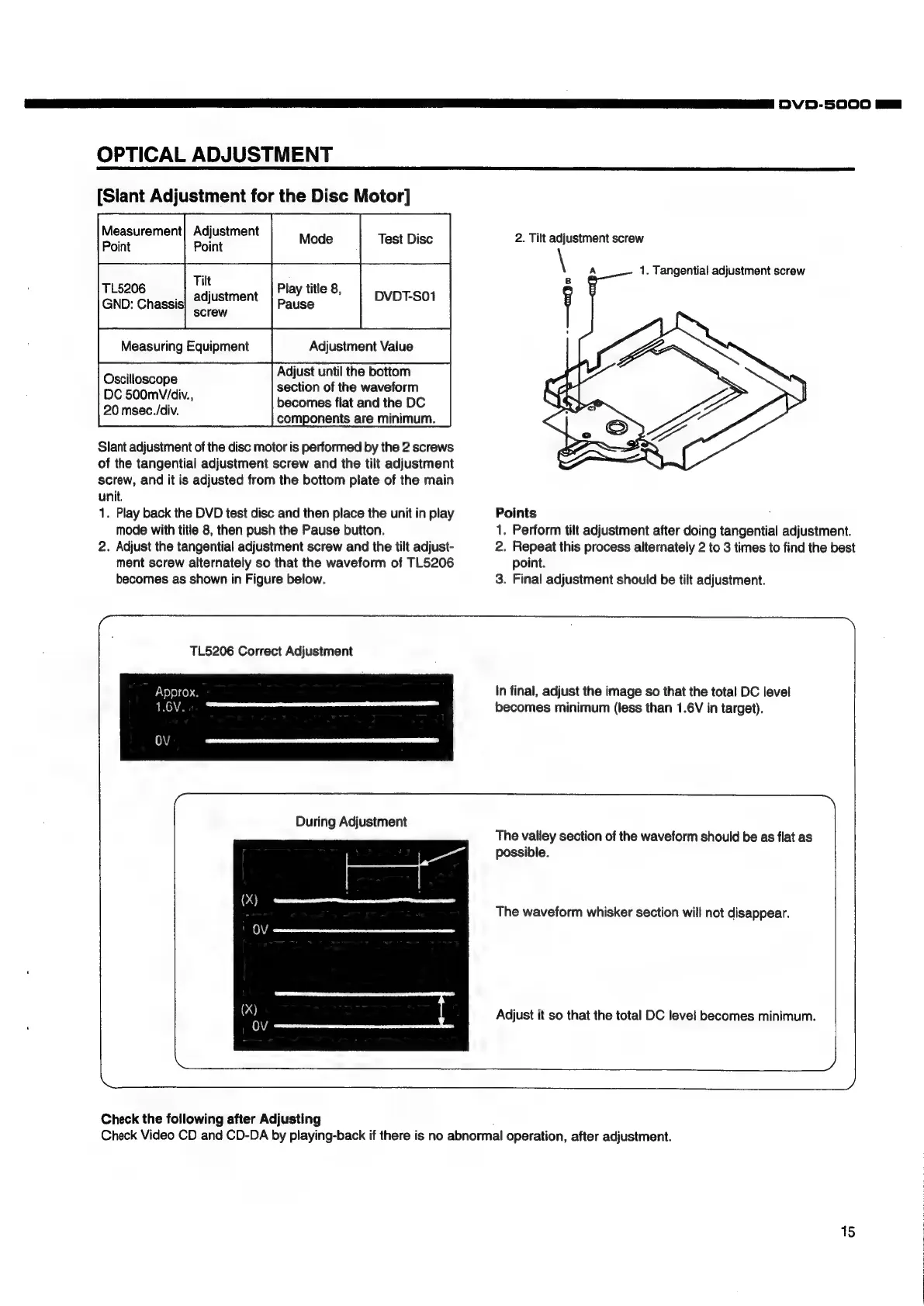 Denon DVD-5000 - Optical Adjustment; Disc Motor Slant Adjustment