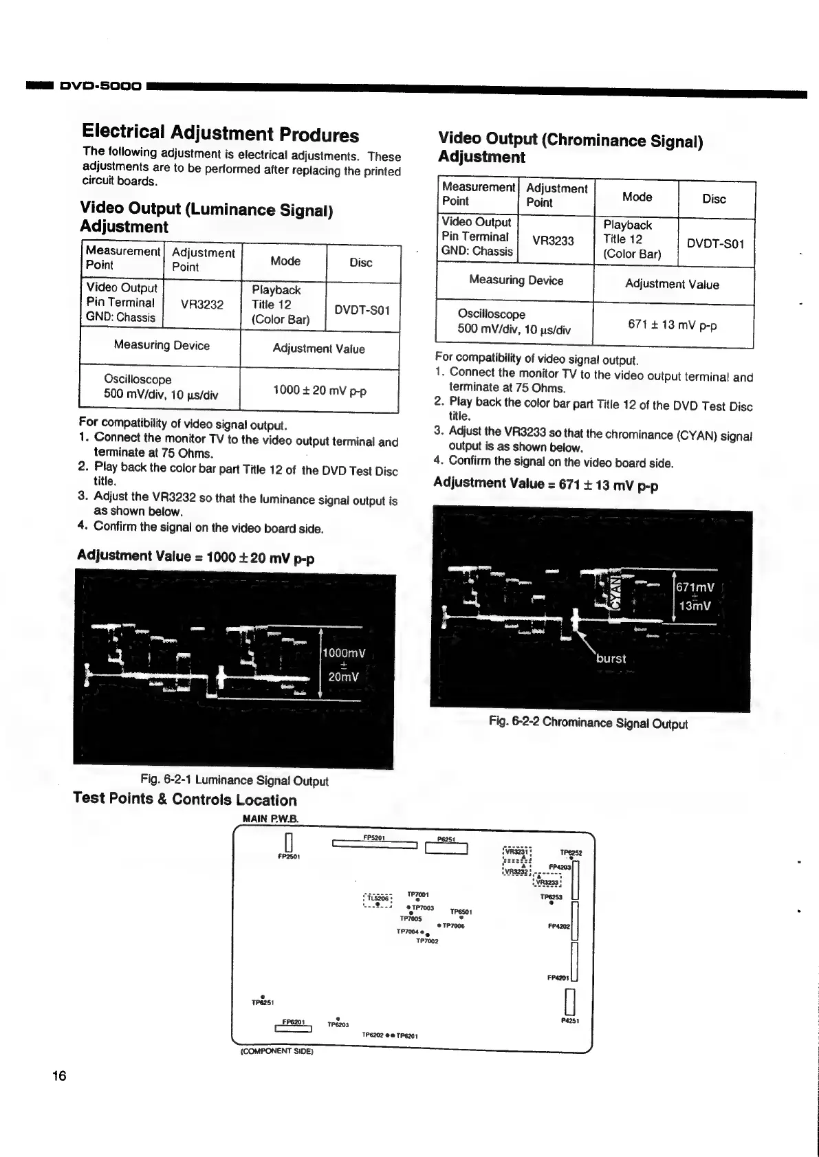 Denon DVD-5000 - Electrical Adjustment Procedures; Luminance Signal Adjustment; Chrominance Signal Adjustment