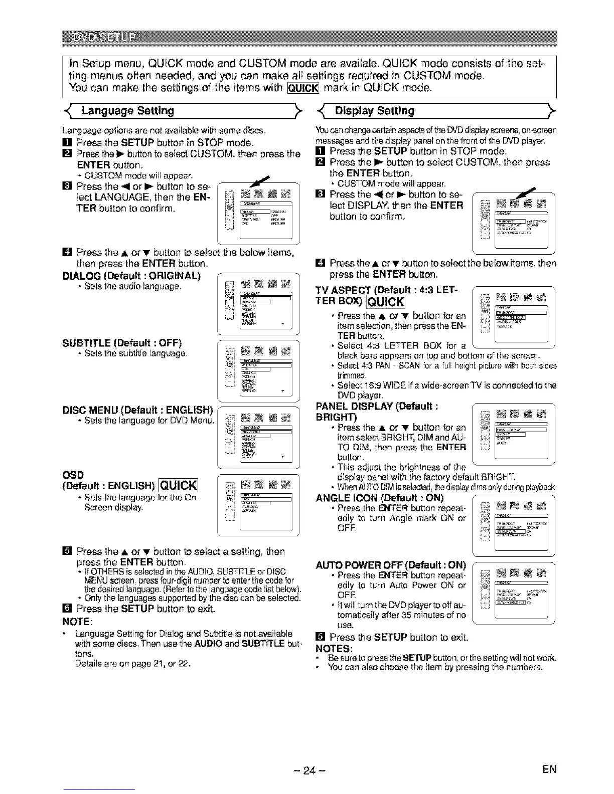 InSetupmenu,QUICKmodeandCUSTOMmodeareavailale.QUICKmodeconsistsoftheset-