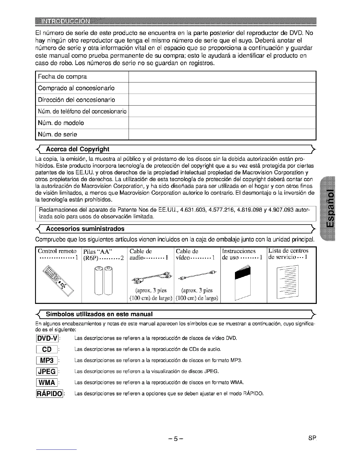 la autorizaci6n de Macrovision Corporation, y ha side diseSada para ser utilizada en e! hogar y con otros fines