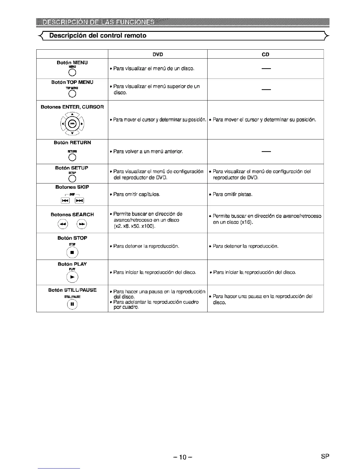Botones SEARCH • Permite boscar ell direscidfl de • Permite busoar erl direcoidrl de ava[lcelretroceso