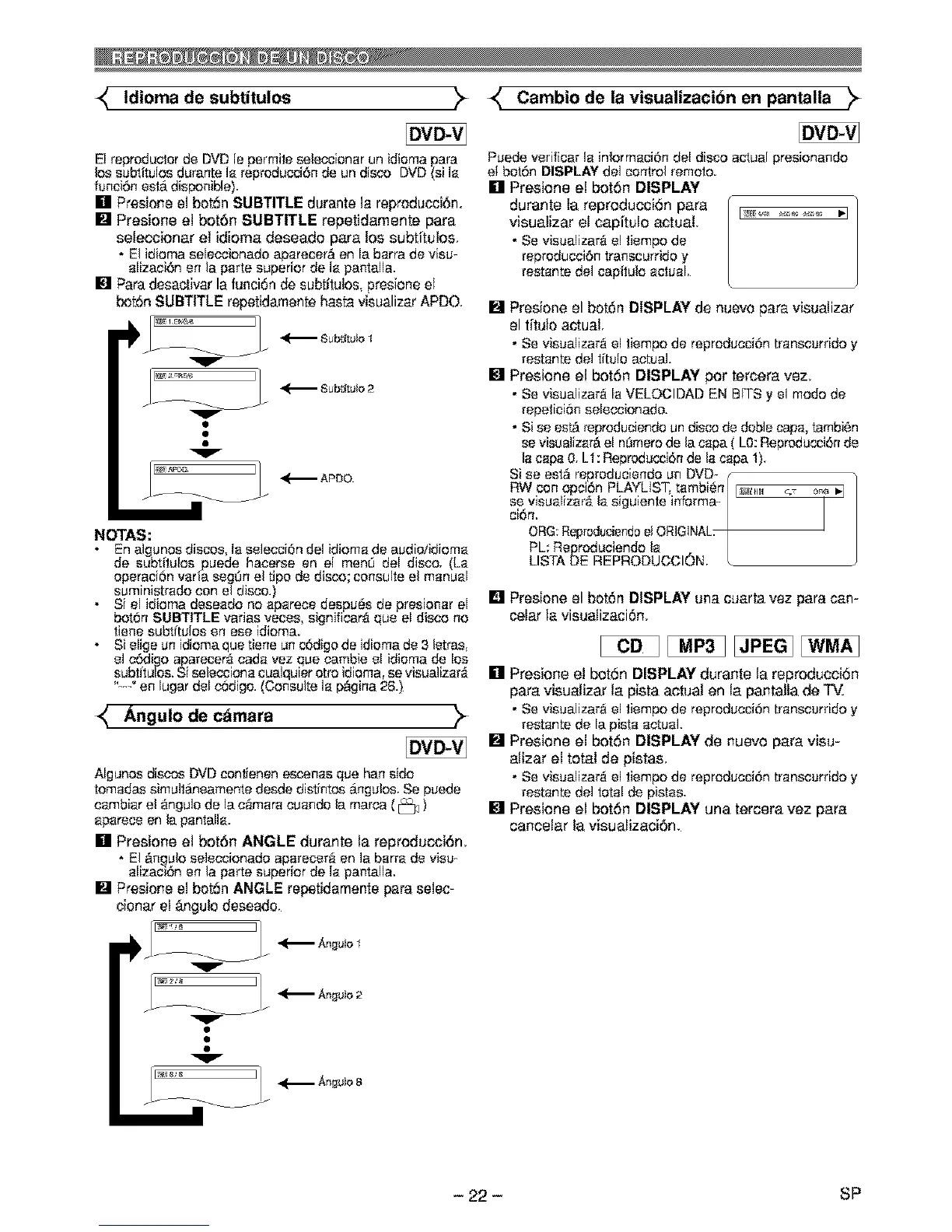 Idioma de subtitulos _- _- Cambio de la visualizacibn en pantalla _>-