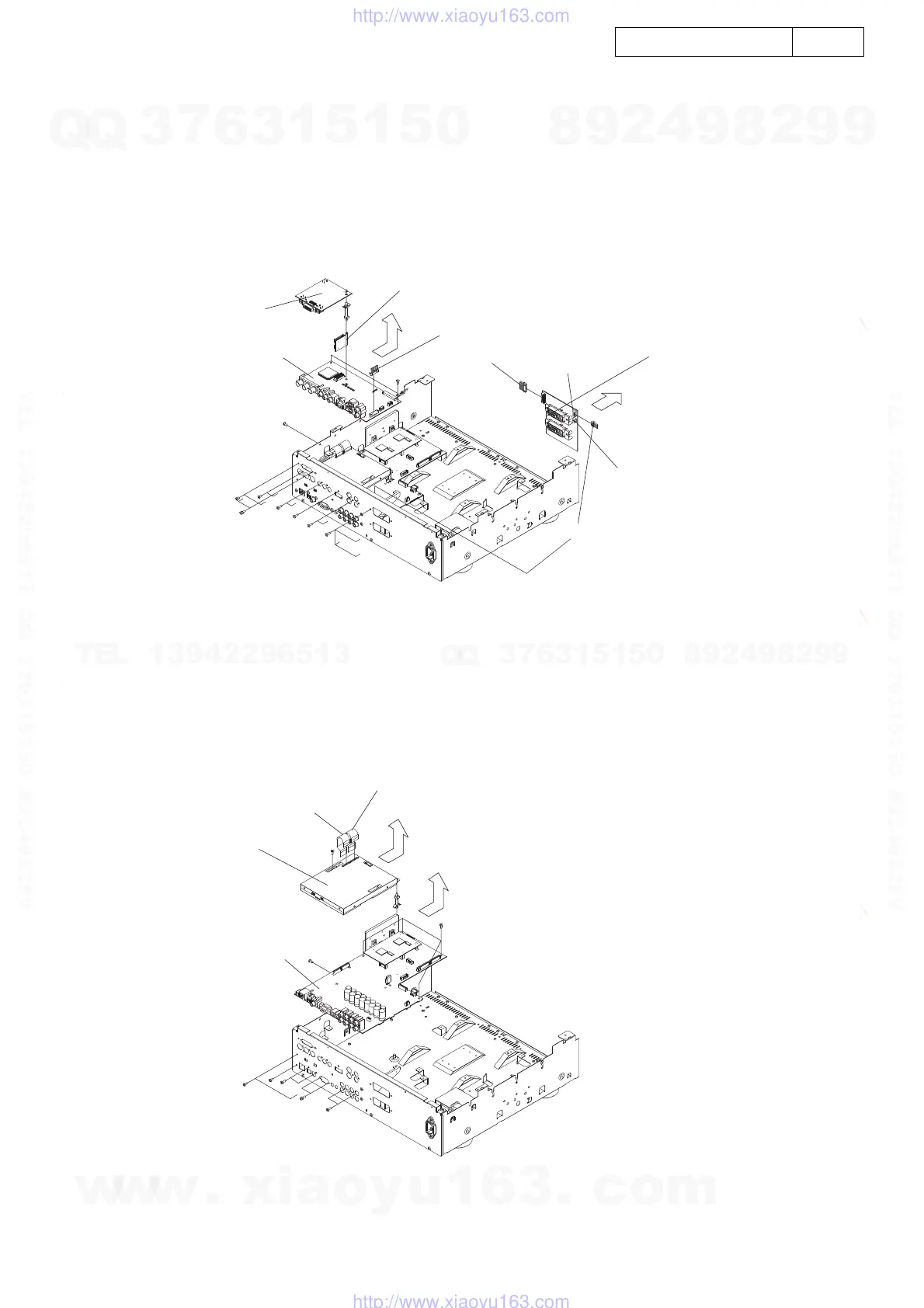 (1)背面からネジ7本と側面からのネジ1(又は2)本、上面からのネジ㧢.㧞. Audio P.W.B.
