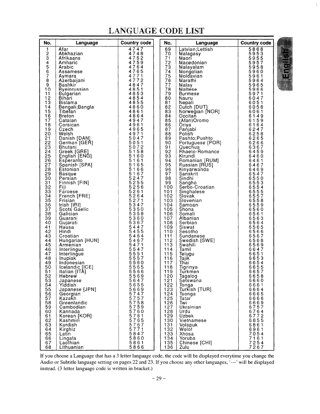 Denon dvd900 - Language Code List