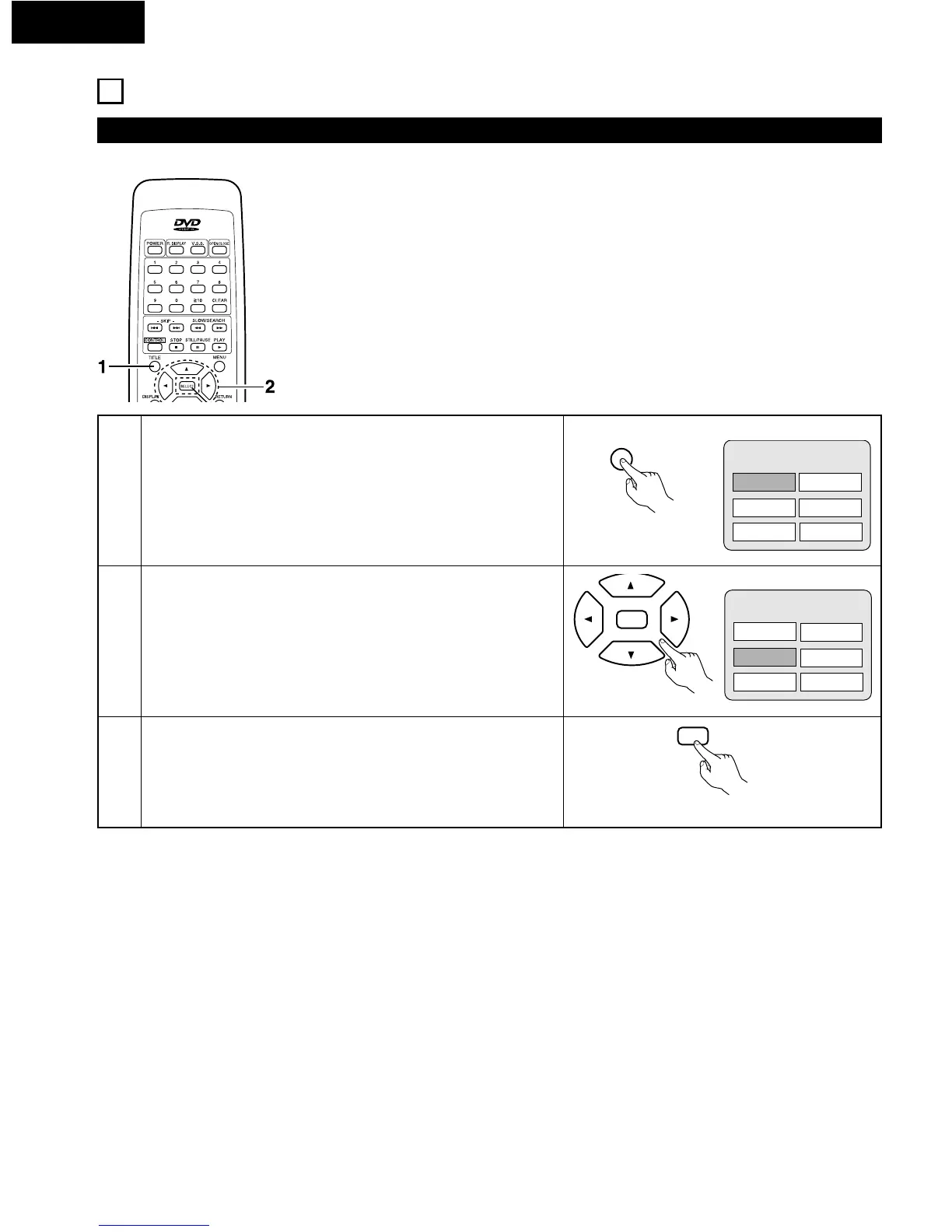 2 For DVDs containing multiple titles, the desired title can be selected and played from the title menu.