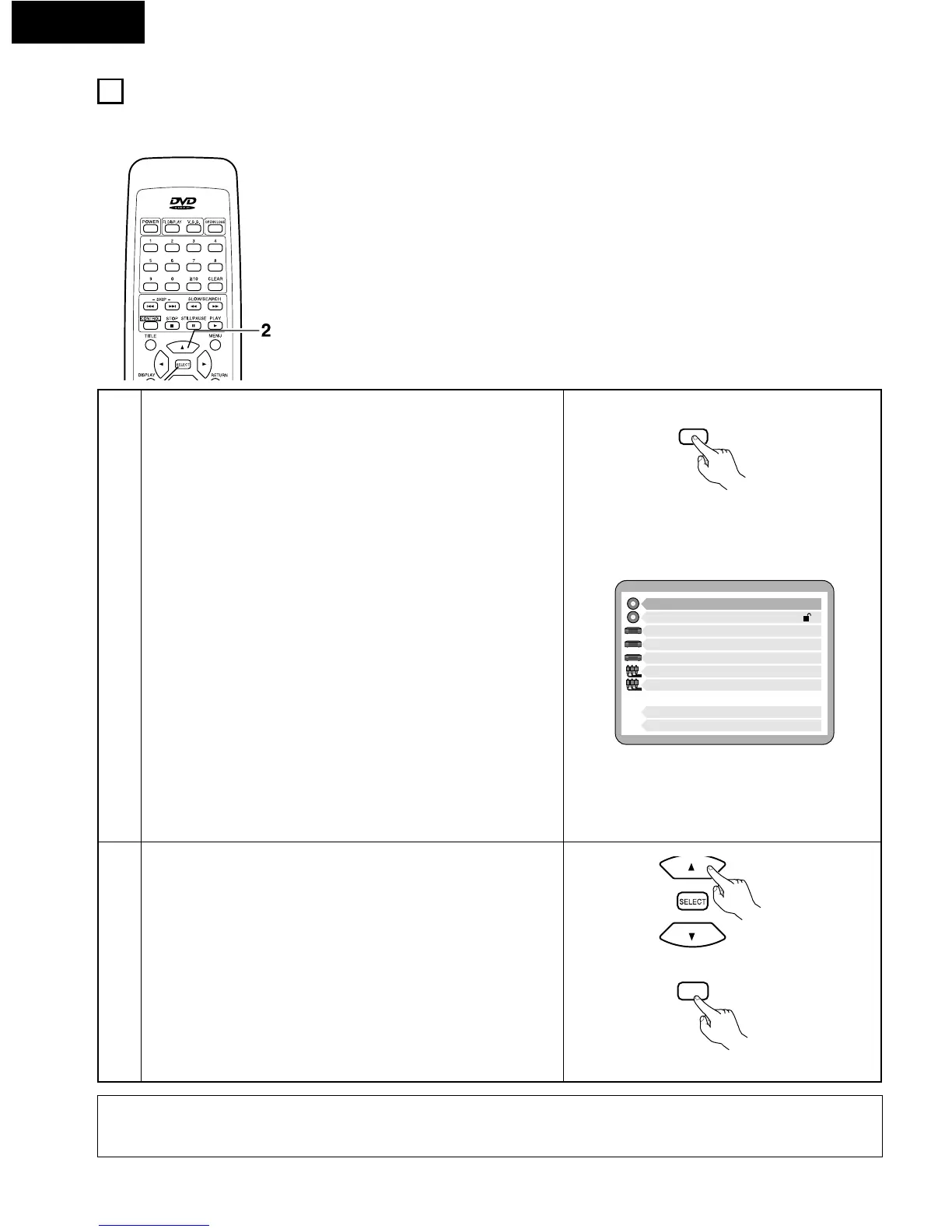• When the player is set to the “Lock All” setting in “2 Ratings”, none of the initial setting, including “2 Rating”, can be changed if the DVD