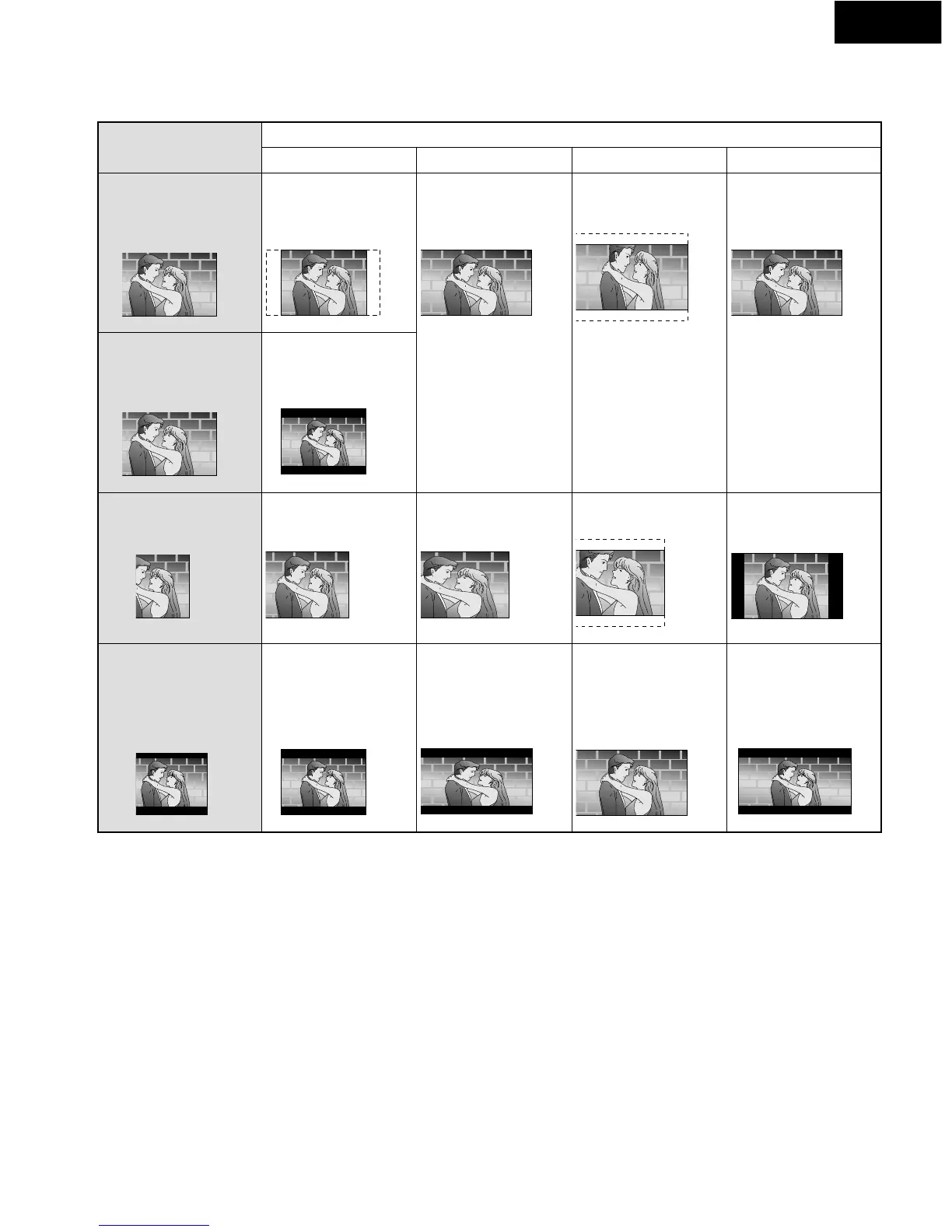 16:9 (“FULL” mode) 16:9 (“ZOOM” mode) 16:9 (“AUTO” mode)