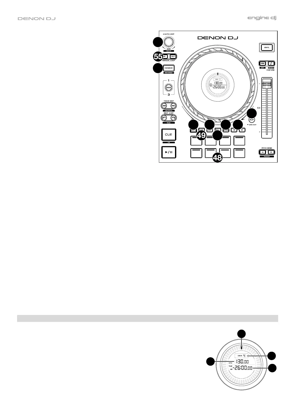 48. Performance Pads: These pads have different functions on each deck depending on the current pad mode. See
