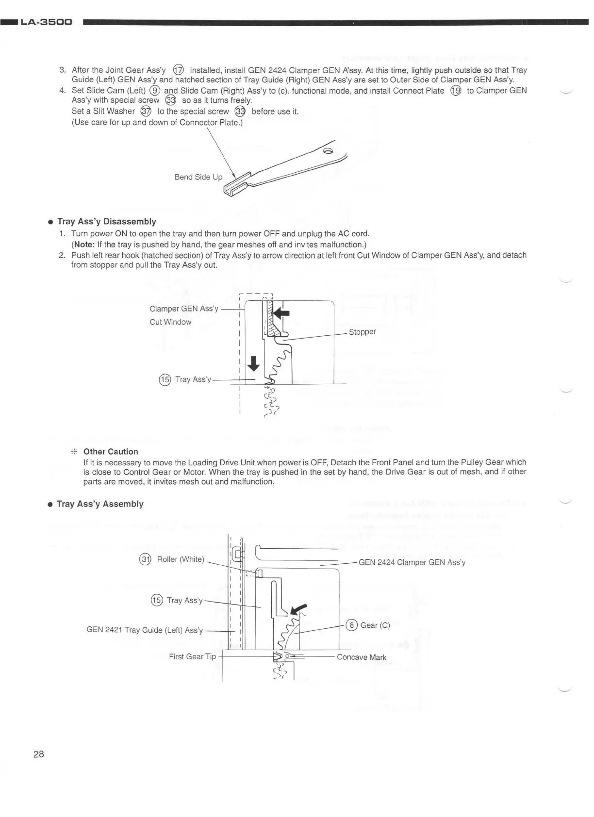 Ass'y @ installed, install GEN 2424 Clamper GEN A'ssy. At this time, lightly push outside so that Tray