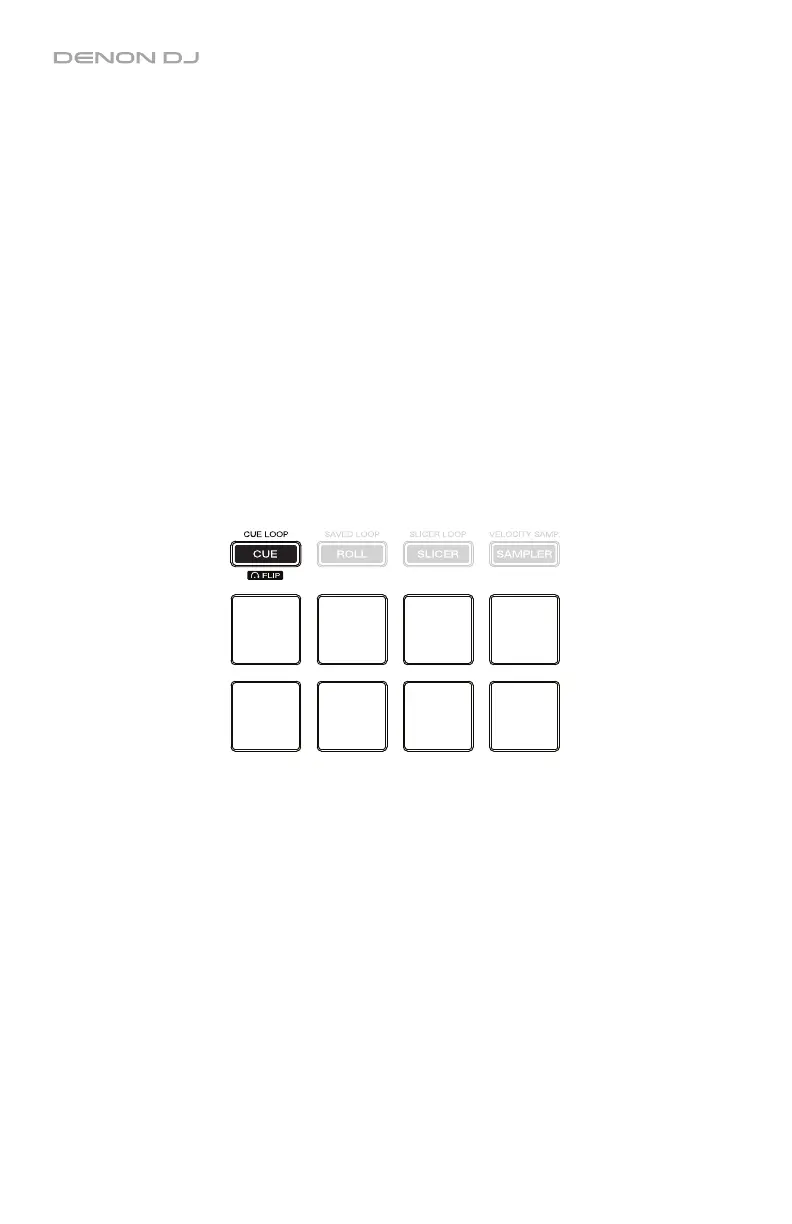 In Cue Loop Mode, each pad assigns a hot cue point or returns the track to that hot cue point