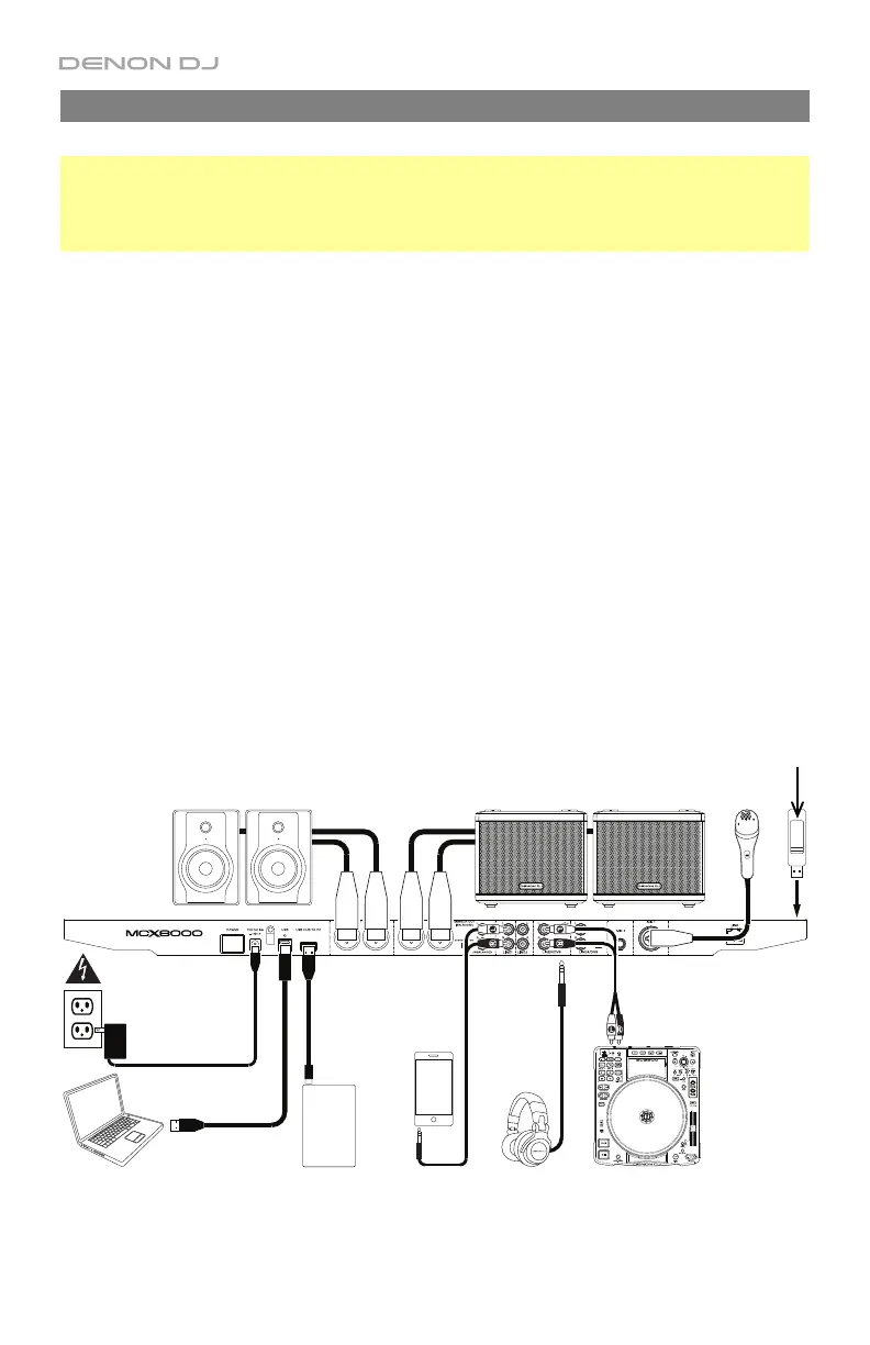 4. Connect input sources (microphones, CD players, etc.) to MCX8000.