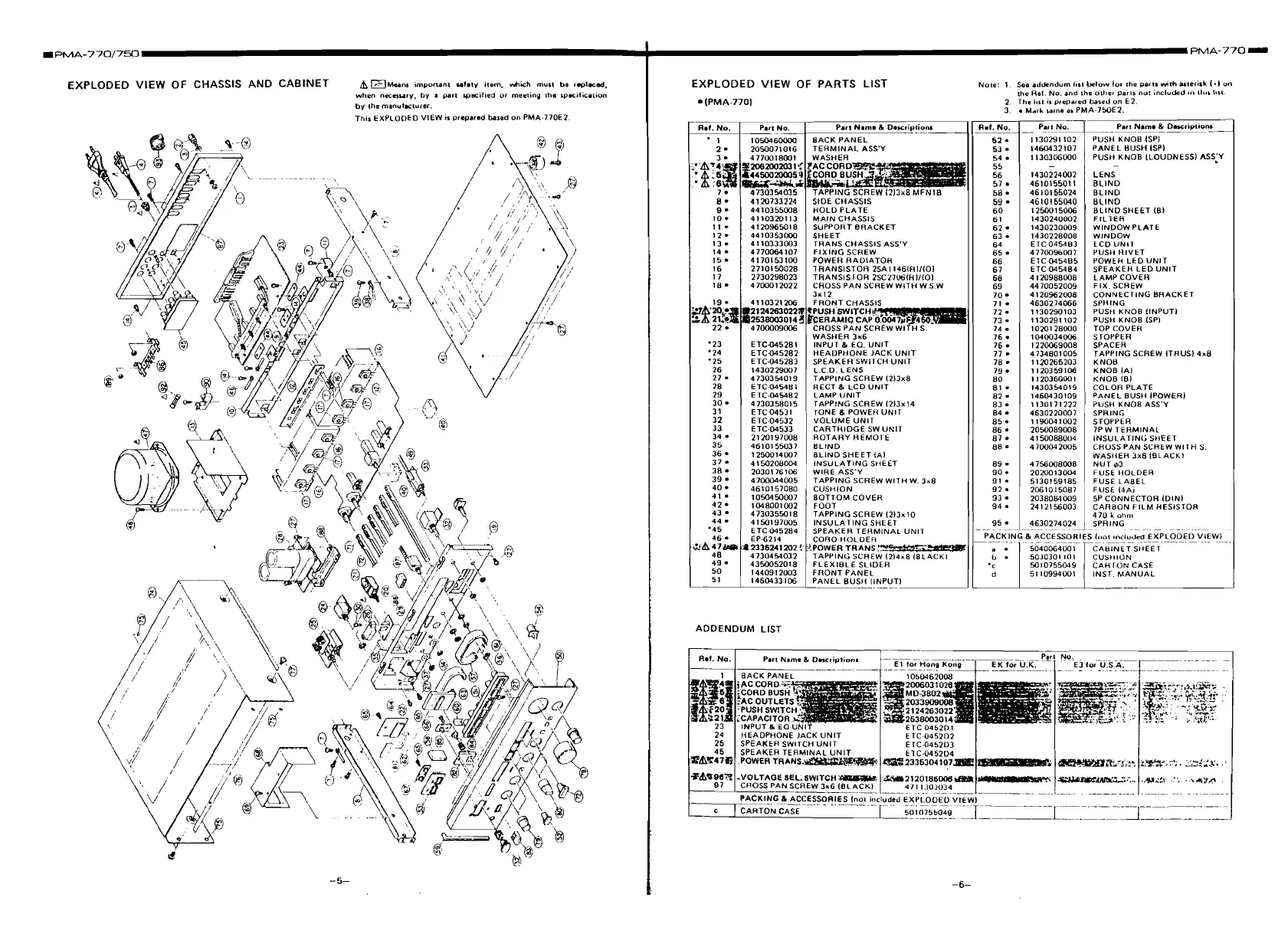 Denon PMA-770 - Exploded View of Chassis and Cabinet; PMA-770 Chassis and Cabinet Exploded View; Exploded View of Parts List (PMA-770); PMA-770 Exploded Parts List