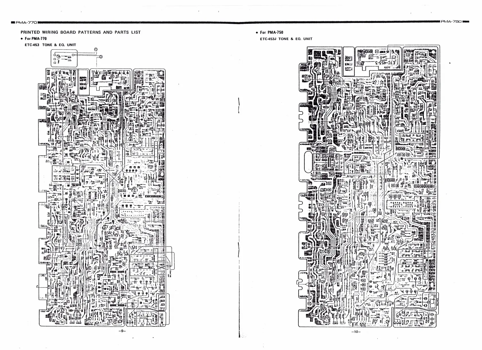Denon PMA-770 - Printed Wiring Board Patterns and Parts List (Tone & Eq. Units); PMA-770 Tone & Eq. Unit PCB Layout; PMA-750 Tone & Eq. Unit PCB Layout