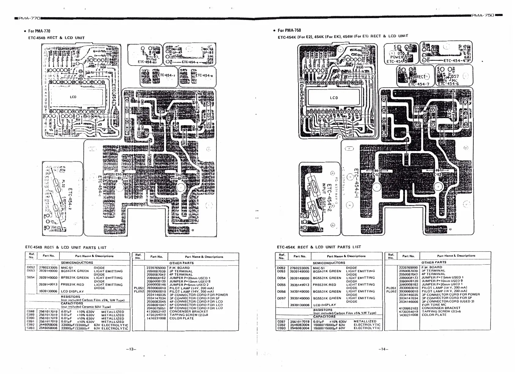 Denon PMA-770 - Rectifier & LCD Unit Parts Lists; PMA-770 Rectifier & LCD Unit Parts; PMA-750 Rectifier & LCD Unit Parts