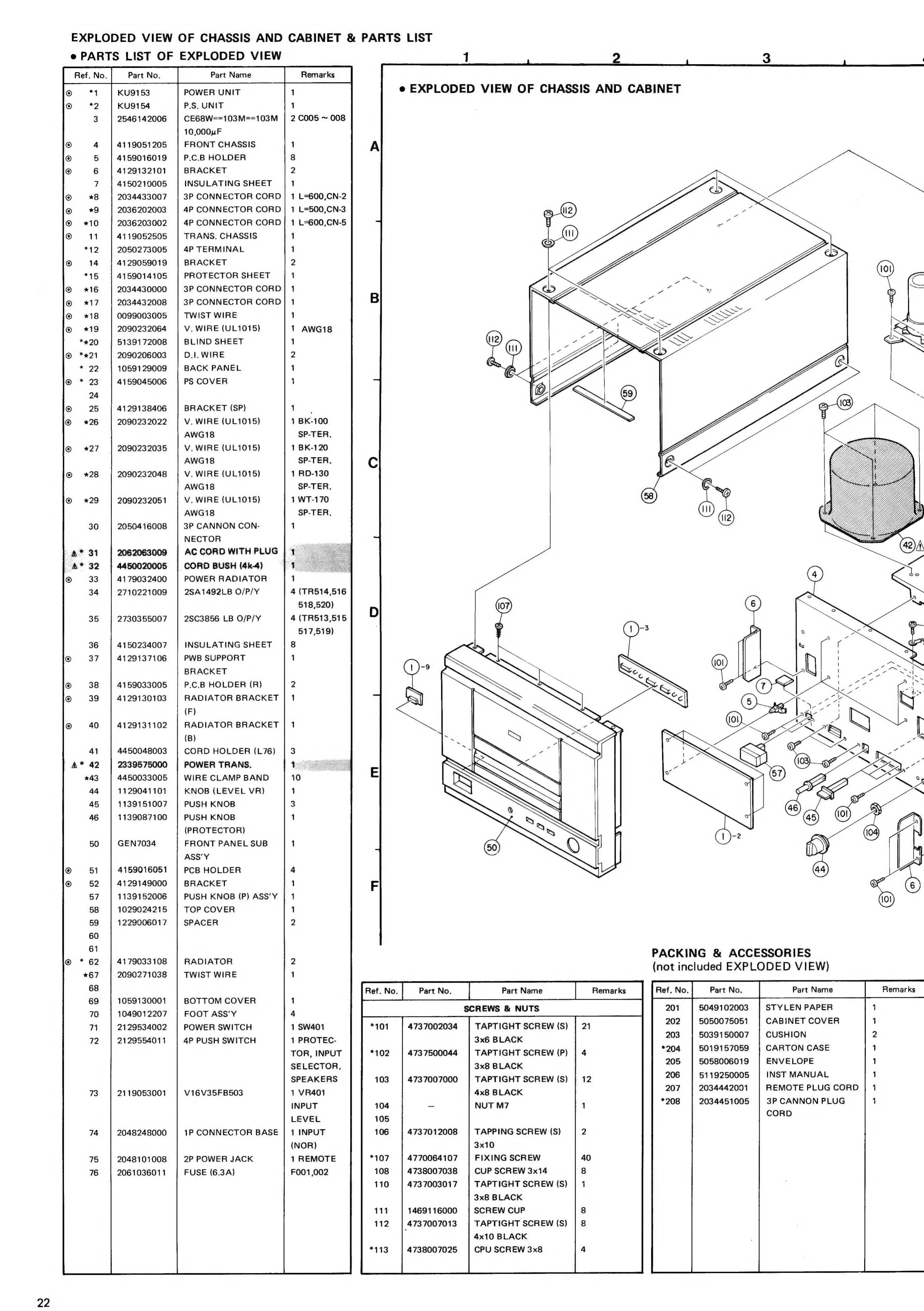 Denon POA-6600A - Exploded View of Chassis and Cabinet; Parts List of Exploded View; Packing & Accessories