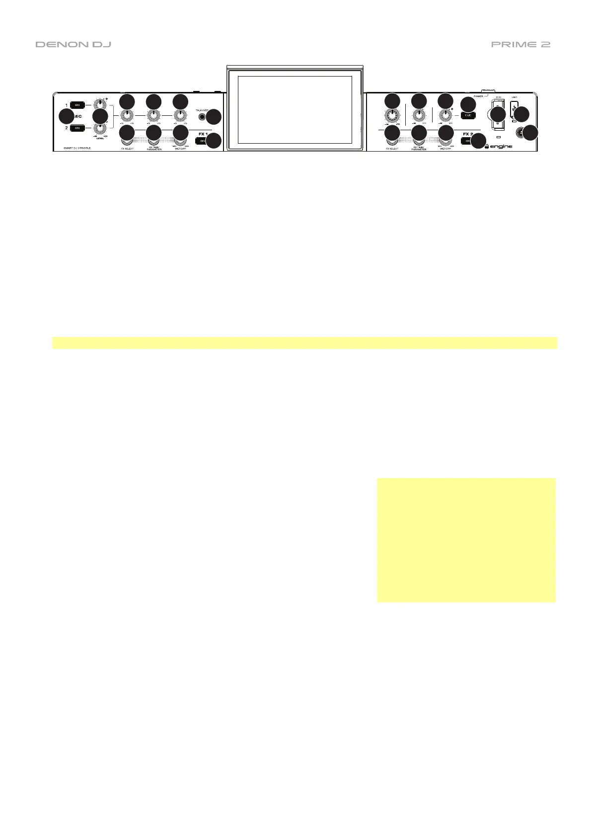 42. FX On: Press these buttons to enable or disable FX 1 and FX 2.