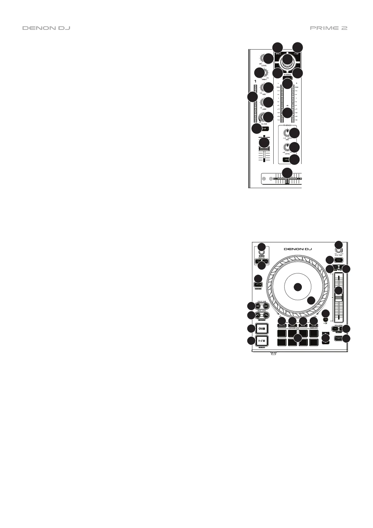 18. Split Cue: When this button is On (fully lit), the headphone audio will be