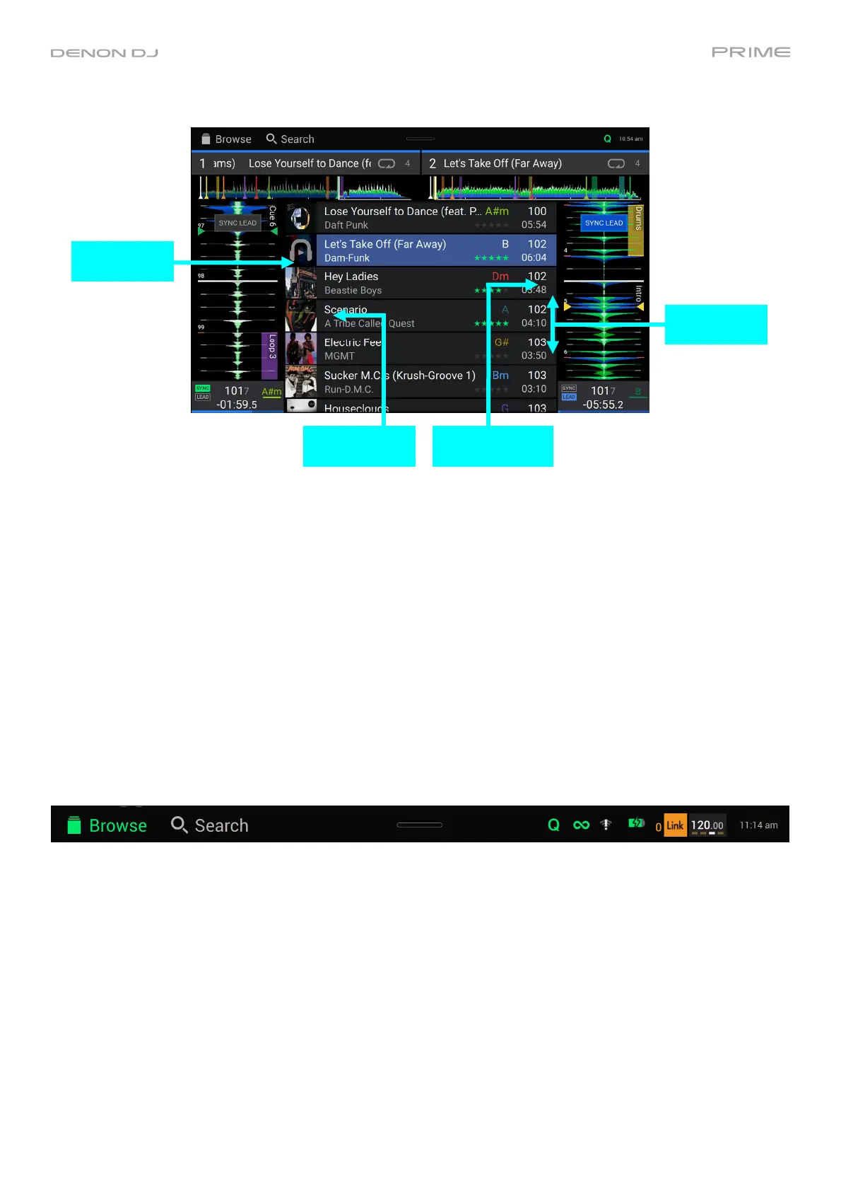 Search: Tap here to search for tracks using the keyboard that appears in the display.