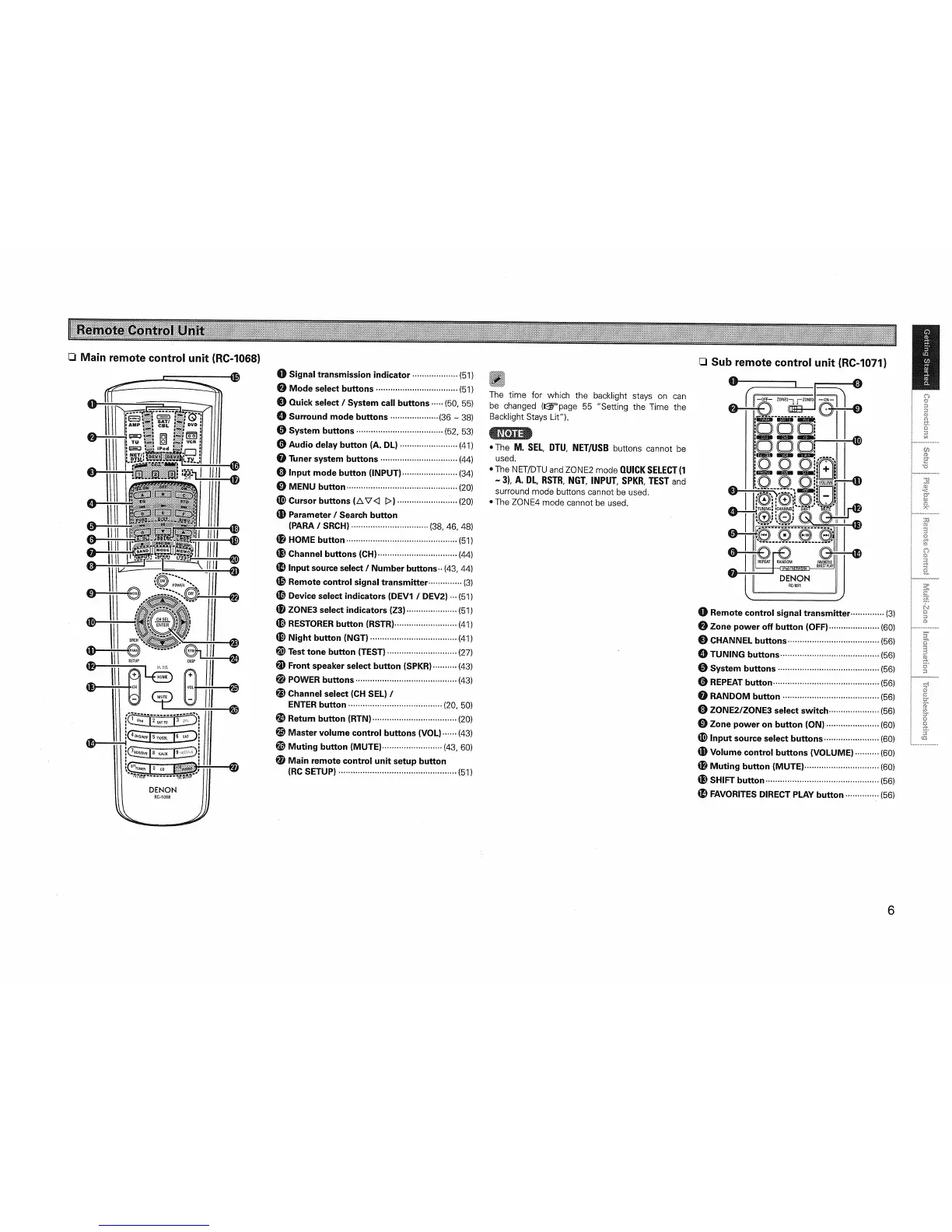 Denon RC-1068 - Remote Control Unit; Sub Remote Control Unit (RC-1071)