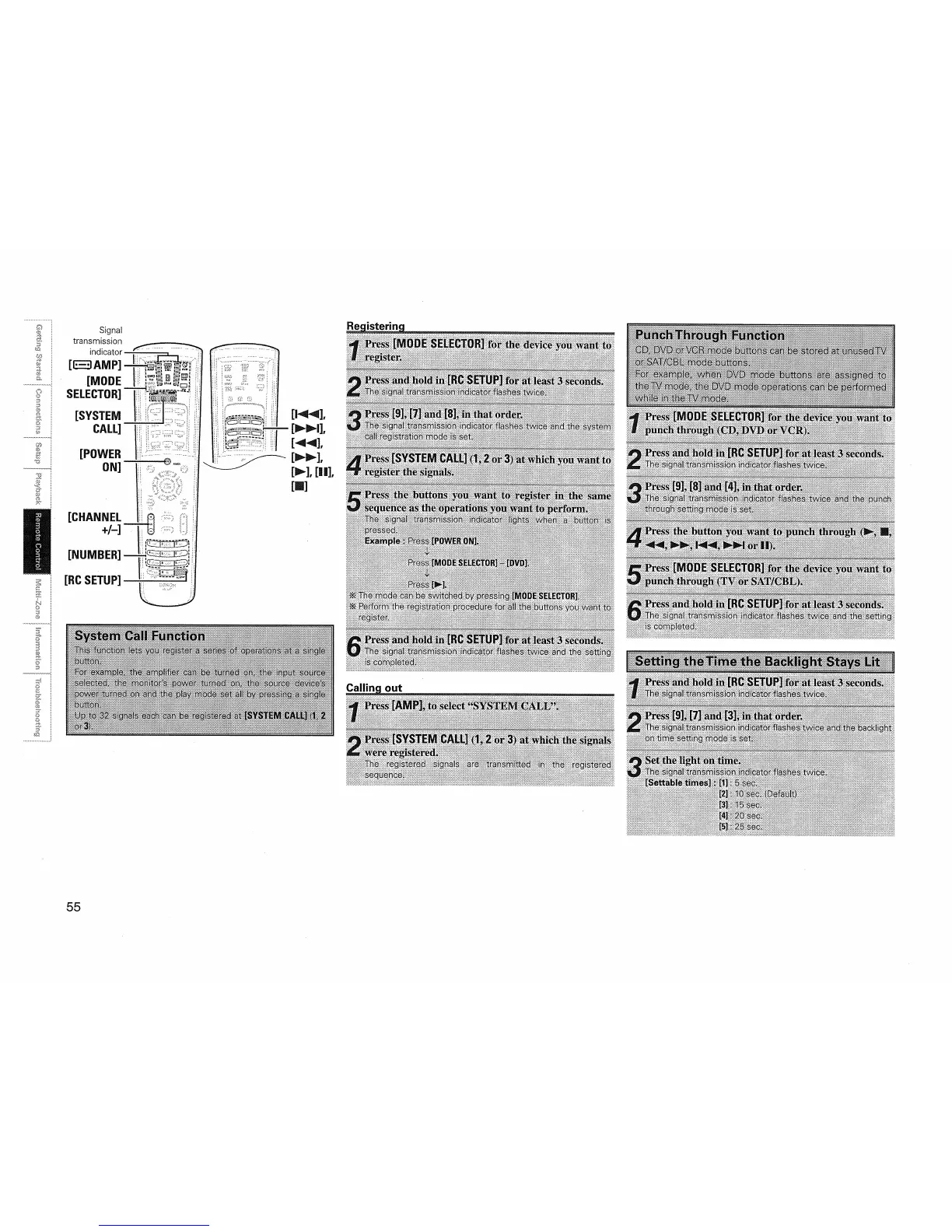 Denon RC-1068 - Registering Operations; Punch Through Function; Backlight Timer Settings