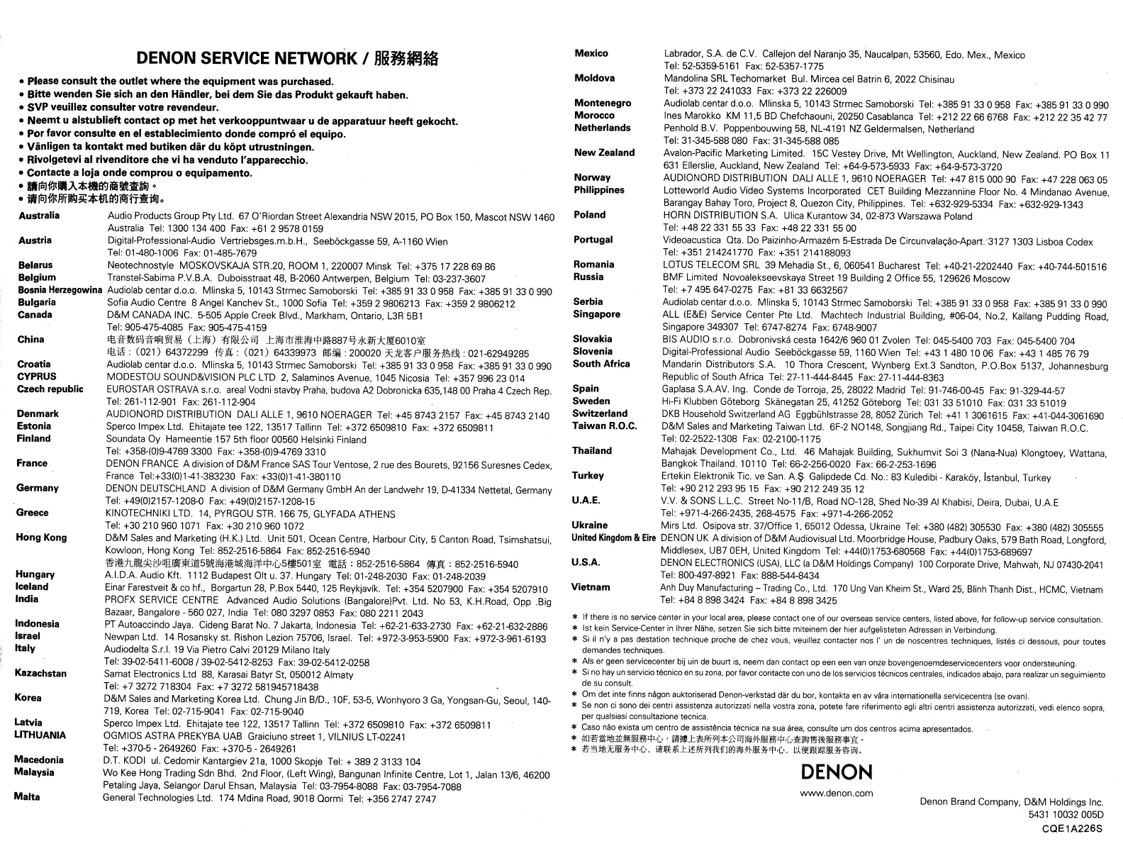 DENON SERVICE NETWORK I
