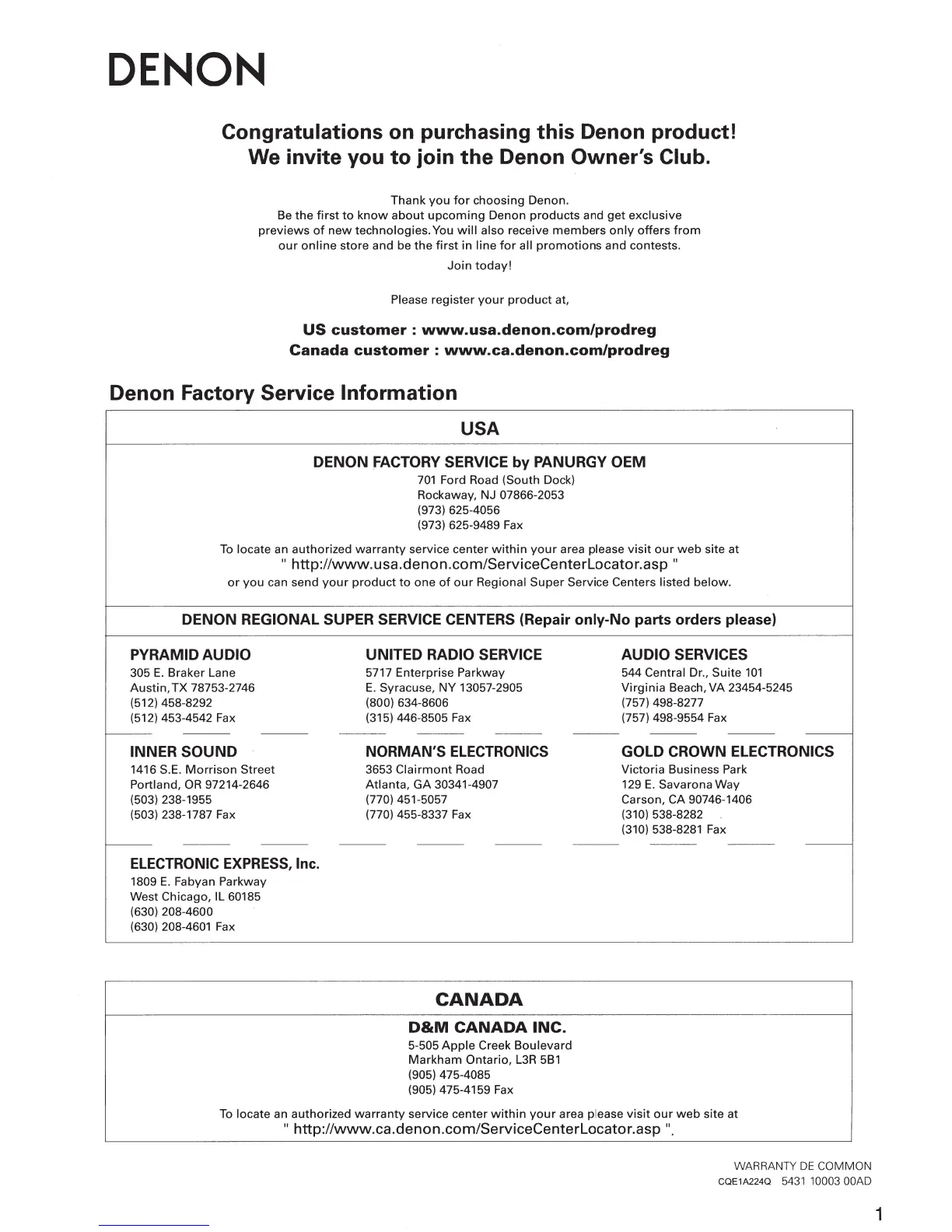 http://www.usa.denon.com/ServiceCenterlocator.asp