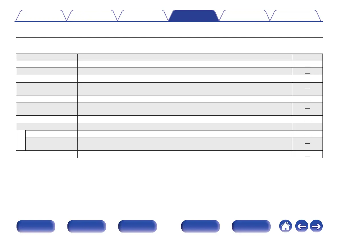 AUTO STANDBY Sets whether to automatically switch the unit to the standby mode when there is no input signal and
