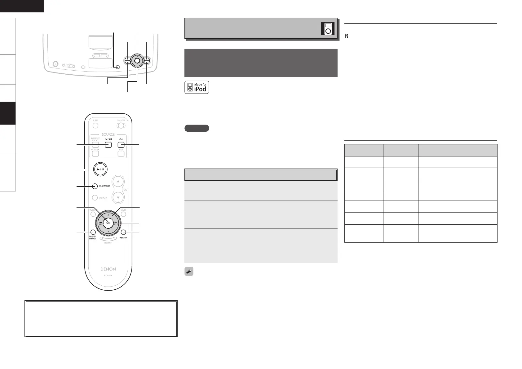 • DENON will accept no responsibility whatsoever for any loss of iPod