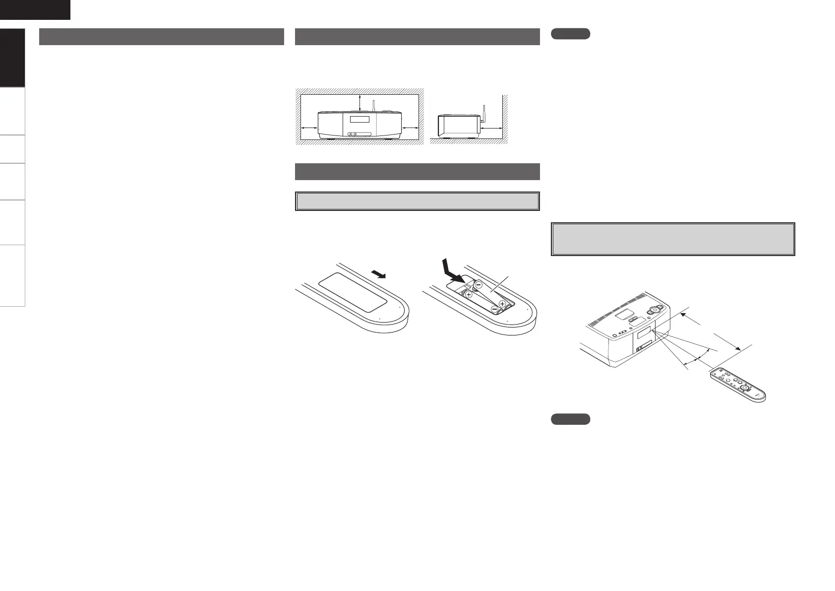 • Remove the batteries from the remote control unit if it will not be in