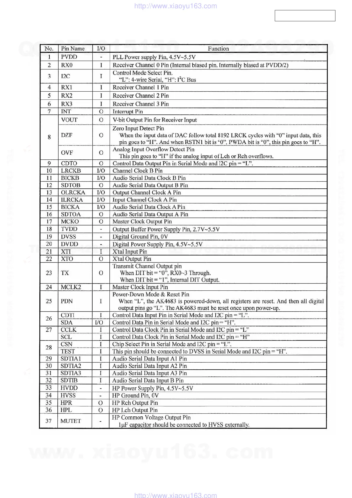 Denon S-52 DAB - AK4683 WQ Pin Function