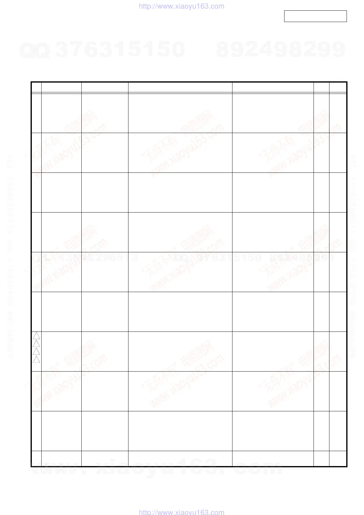 *本表に"nsp" と記載されている部品は供給できません。