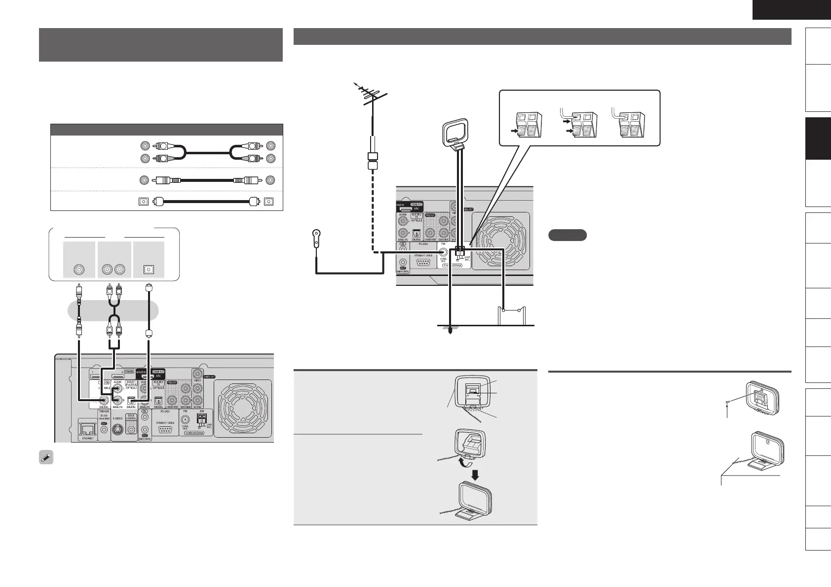 Connect the FM antenna or AM loop antenna included with the unit to enjoy listening to radio broadcasts.