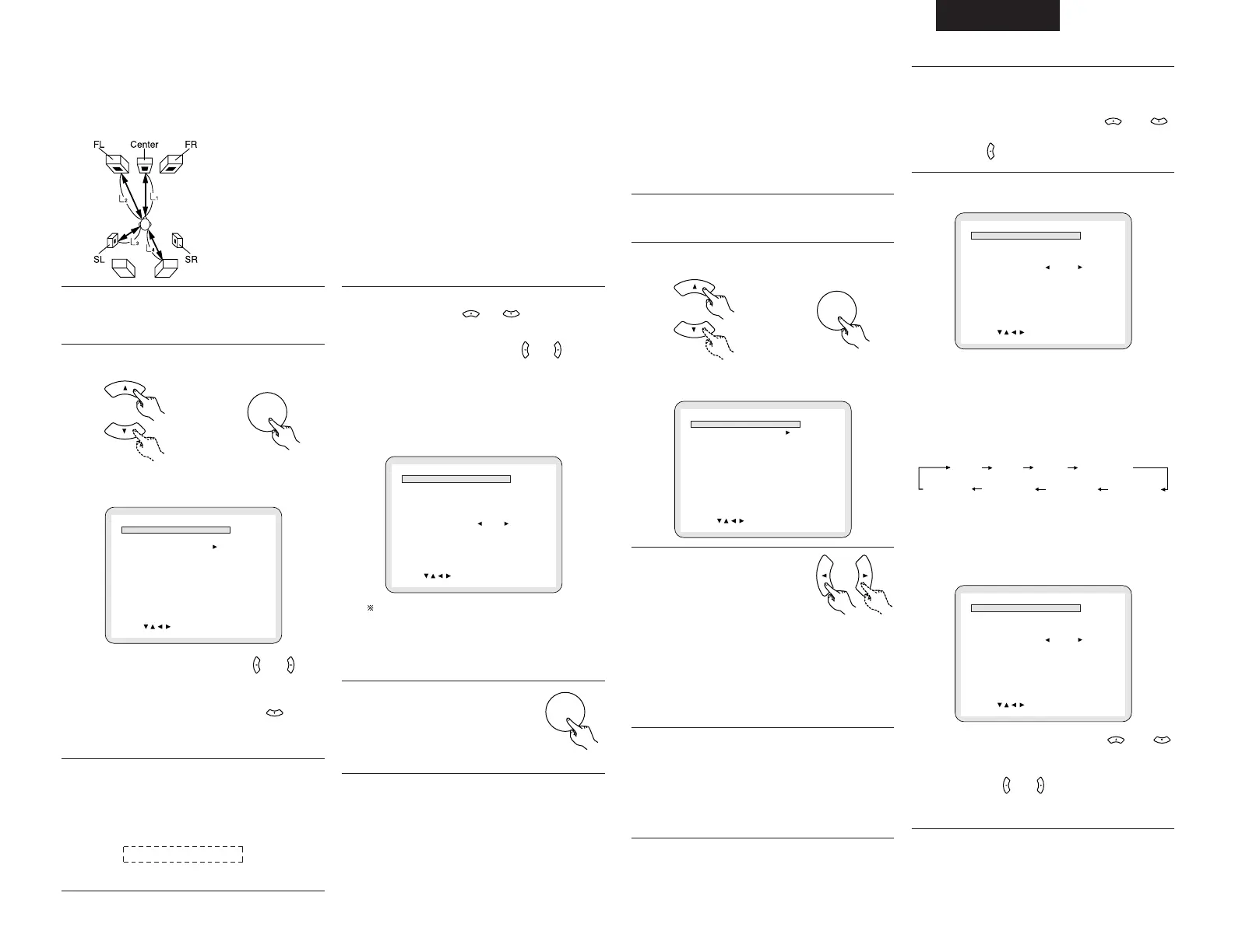 • Entrer les distances de la position d’écoute aux enceintes et régler le temps de retard du surround.