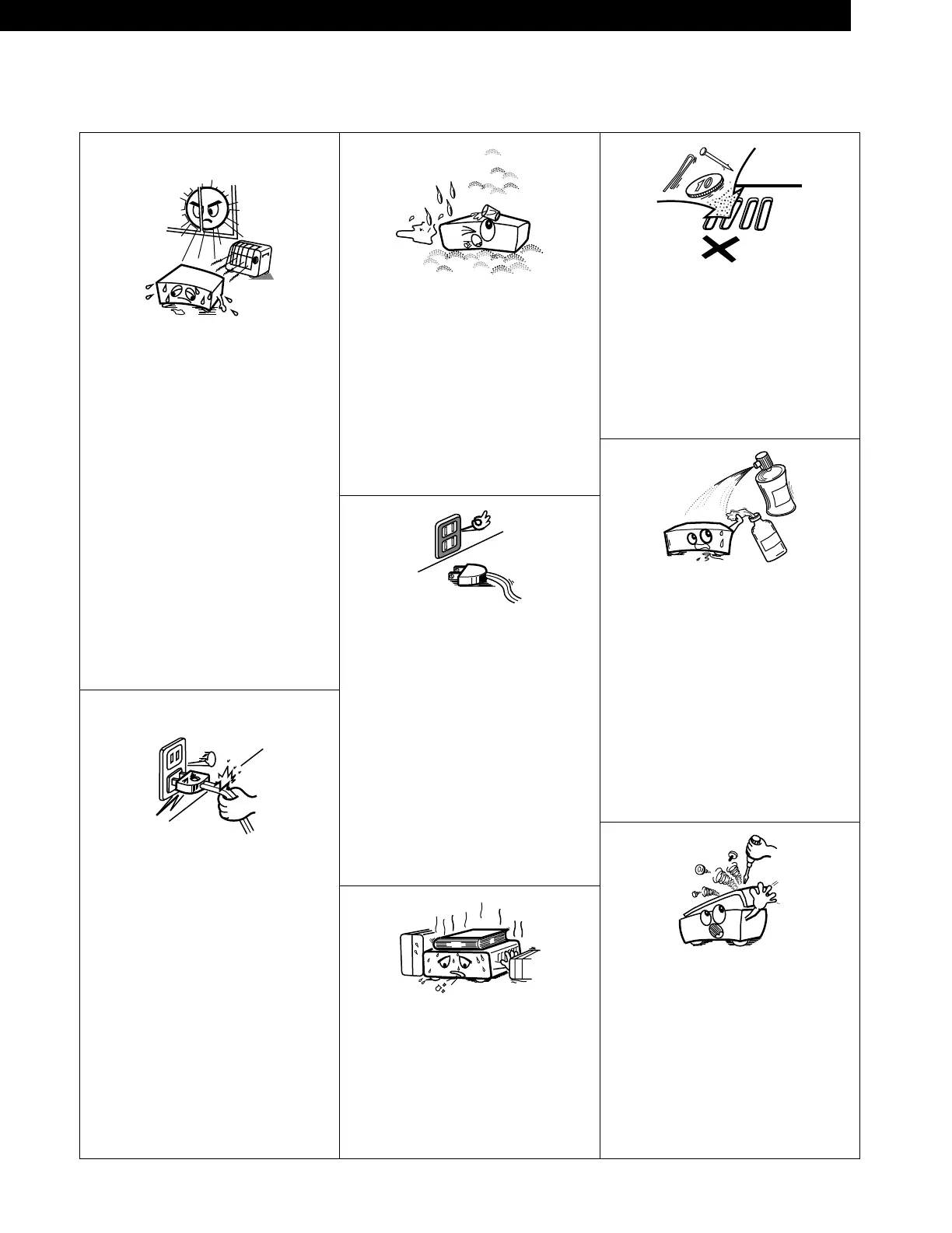 • Mantenga el equipo libre de humedad, agua y
