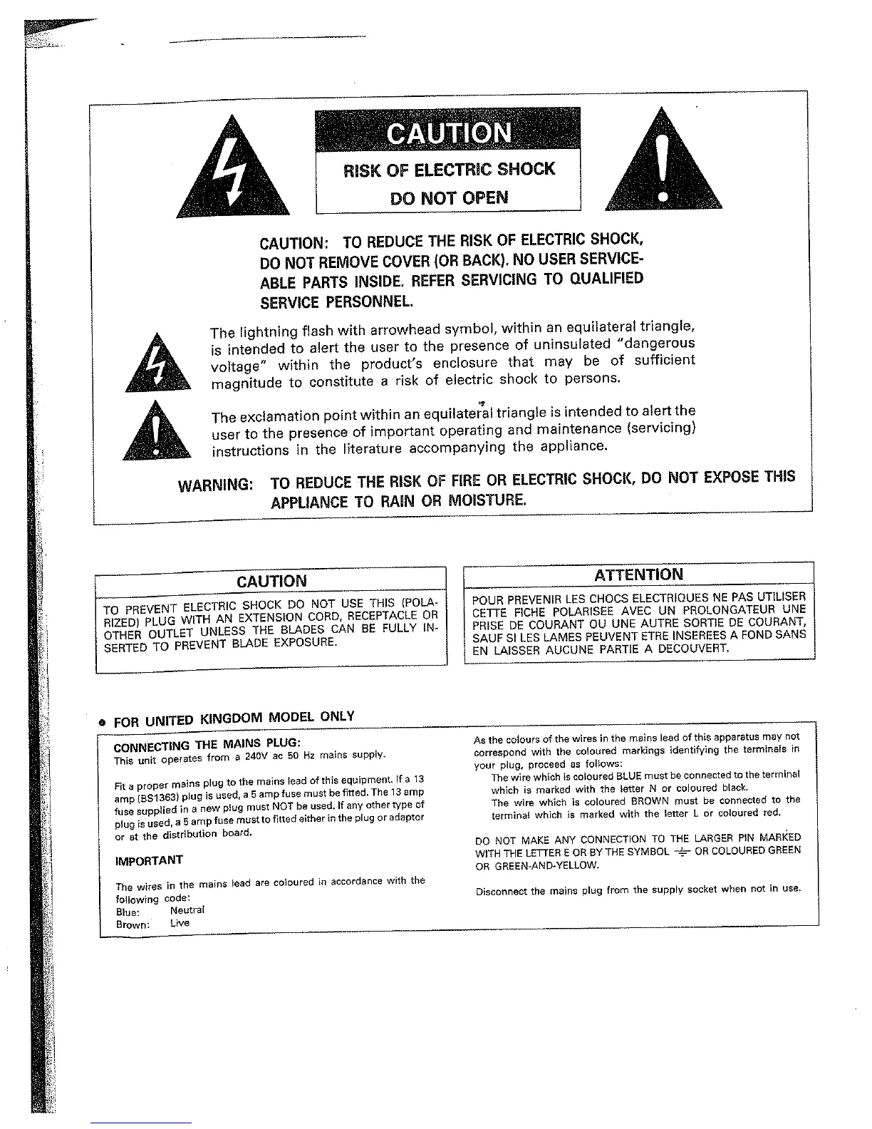 Denon TU-280 - Safety and Warning Information; Electrical Safety Precautions; Mains Plug Connection (UK Models)