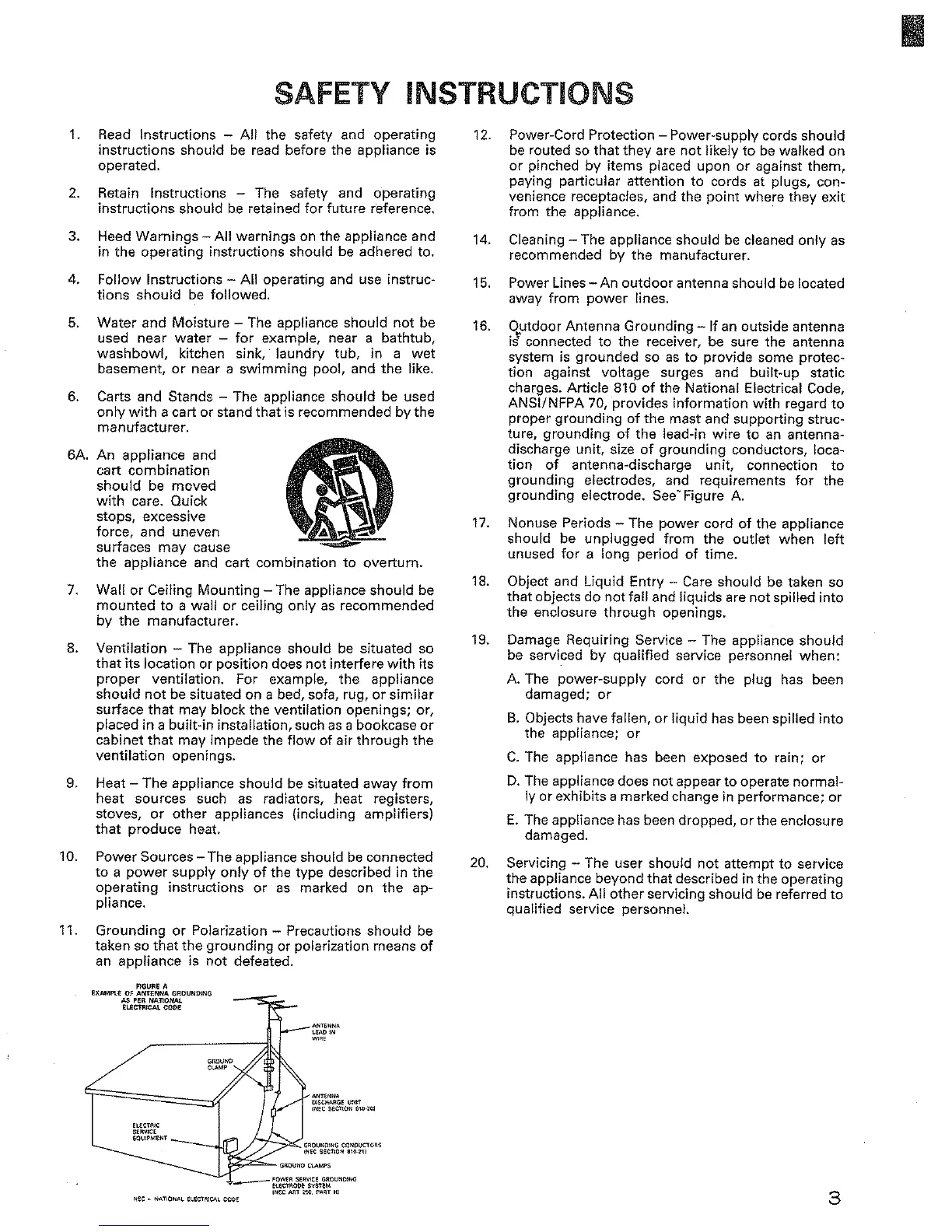 Denon TU-280 - General Safety Instructions; Usage, Placement, and Environment; Power, Grounding, and Cords; Service and Protection