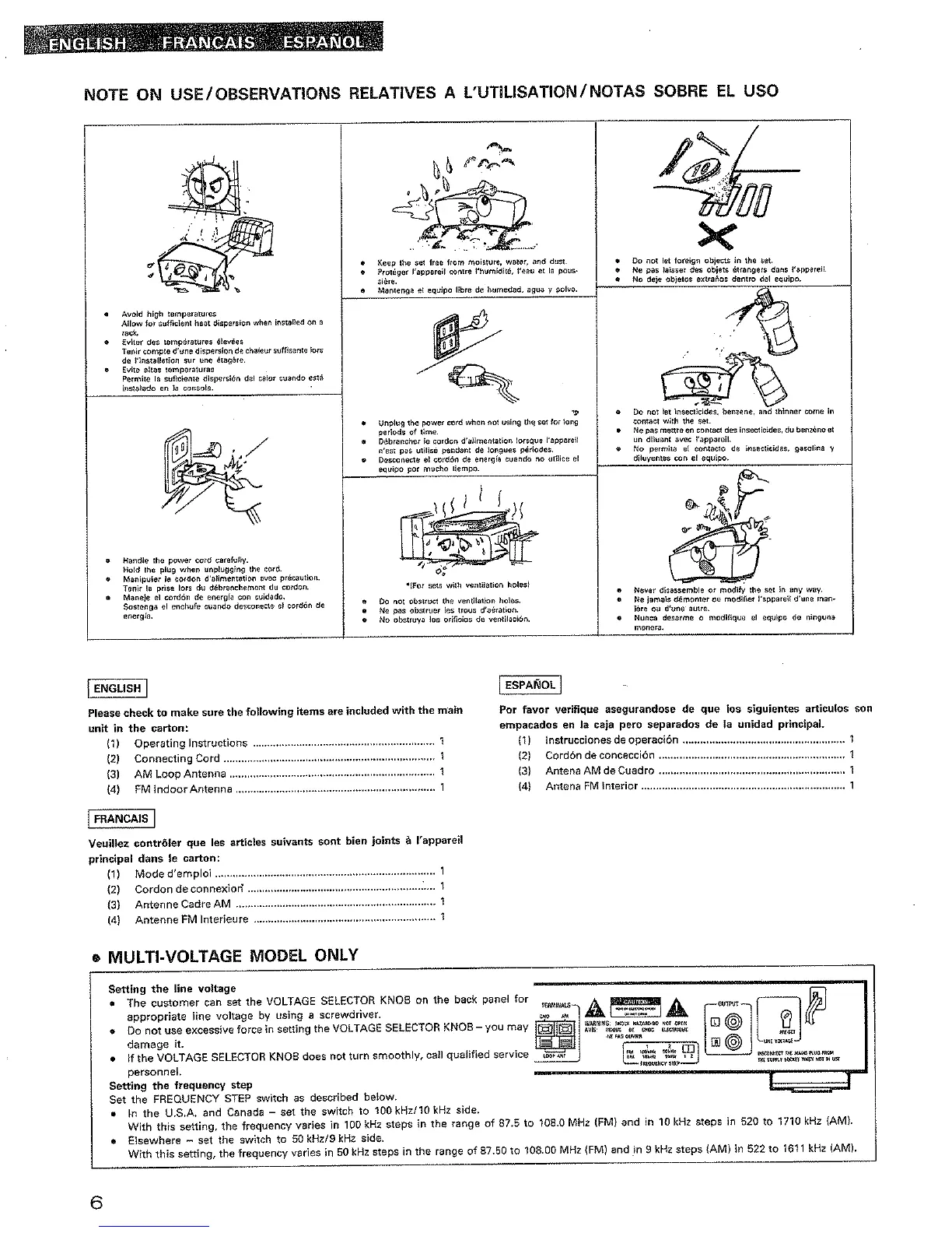 Denon TU-280 - Usage Notes and Model Settings; General Usage Precautions; Multi-Voltage and Frequency Settings