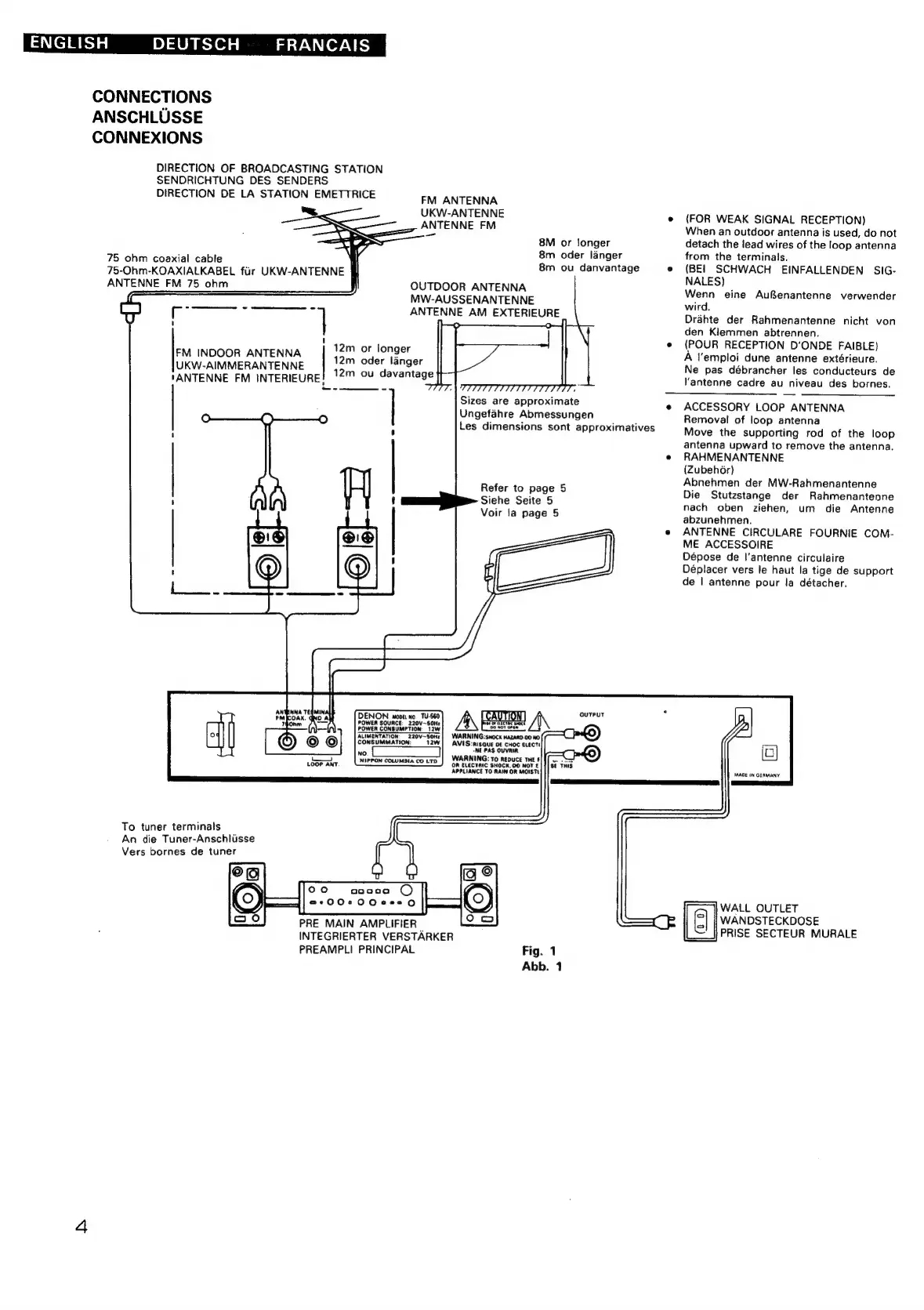 Denon TU-560 - CONNECTIONS; DIRECTION OF BROADCASTING STATION