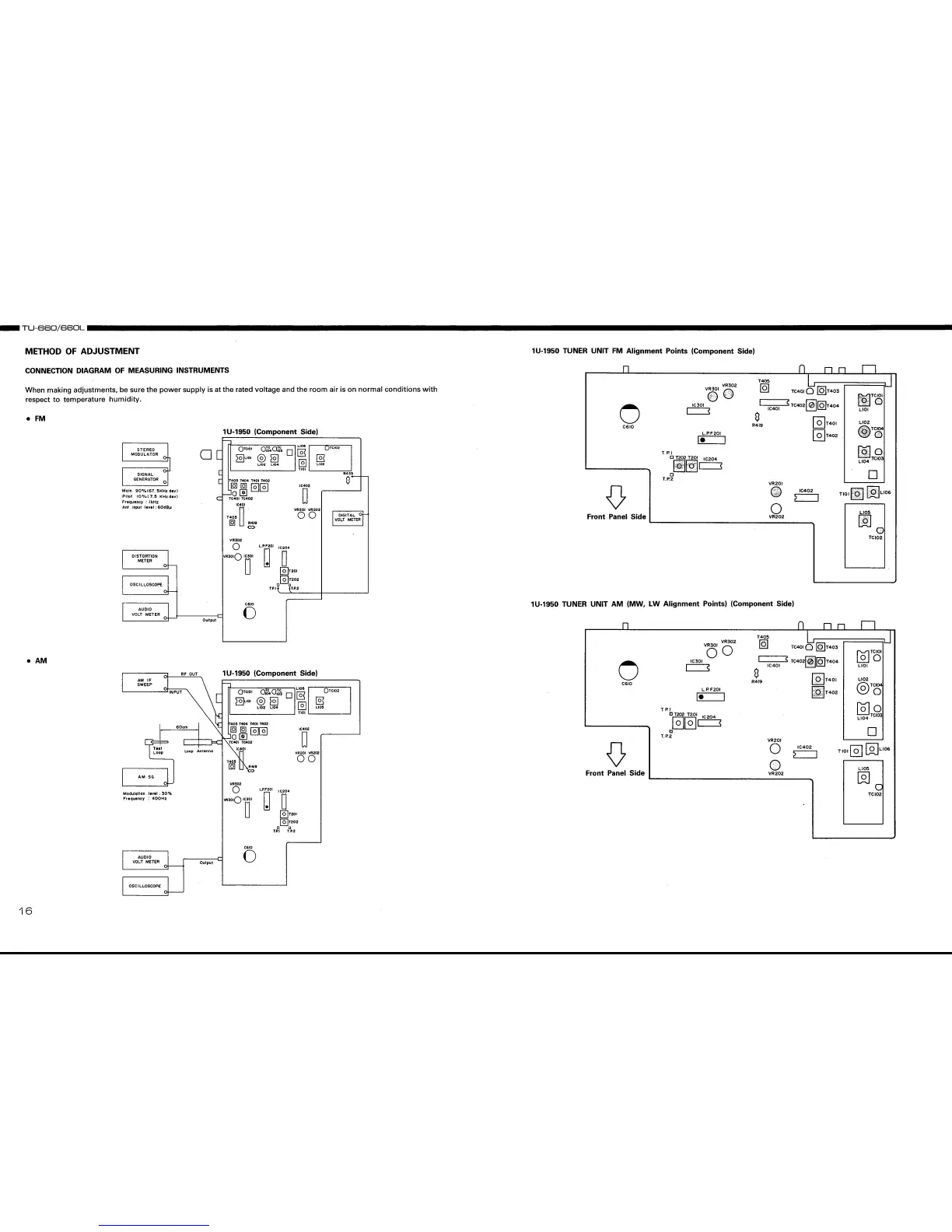 Denon TU-660 - Adjustment Procedures; Measuring Instrument Setup for Adjustments; FM and AM Alignment Points