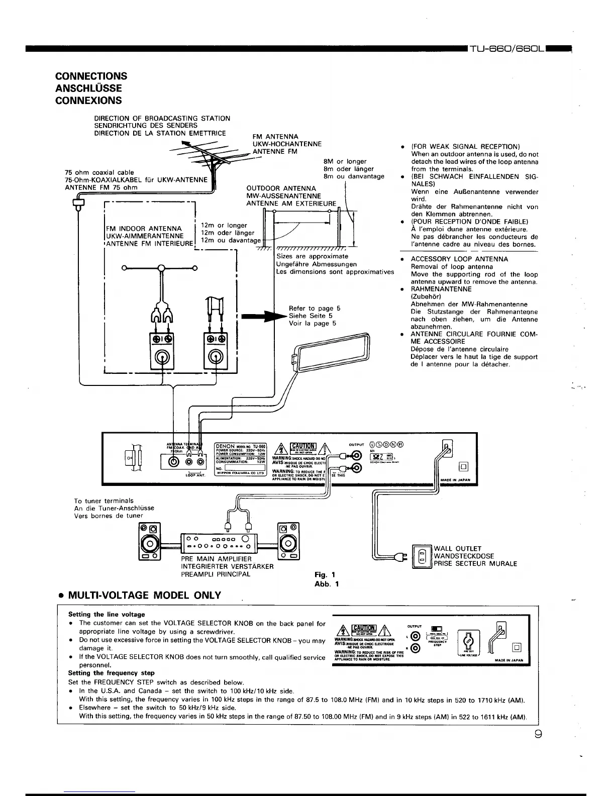Denon TU-660 - Setup and Configuration; Multi-Voltage Model Setup; Frequency Tuning Step Setting