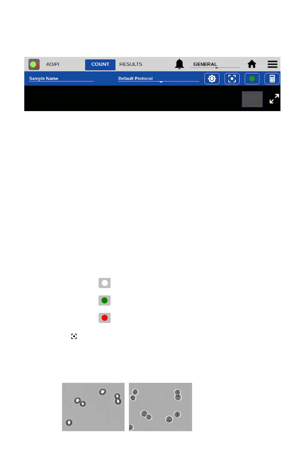 From the Count tab, users can preview the live image, input sample information, select the protocol