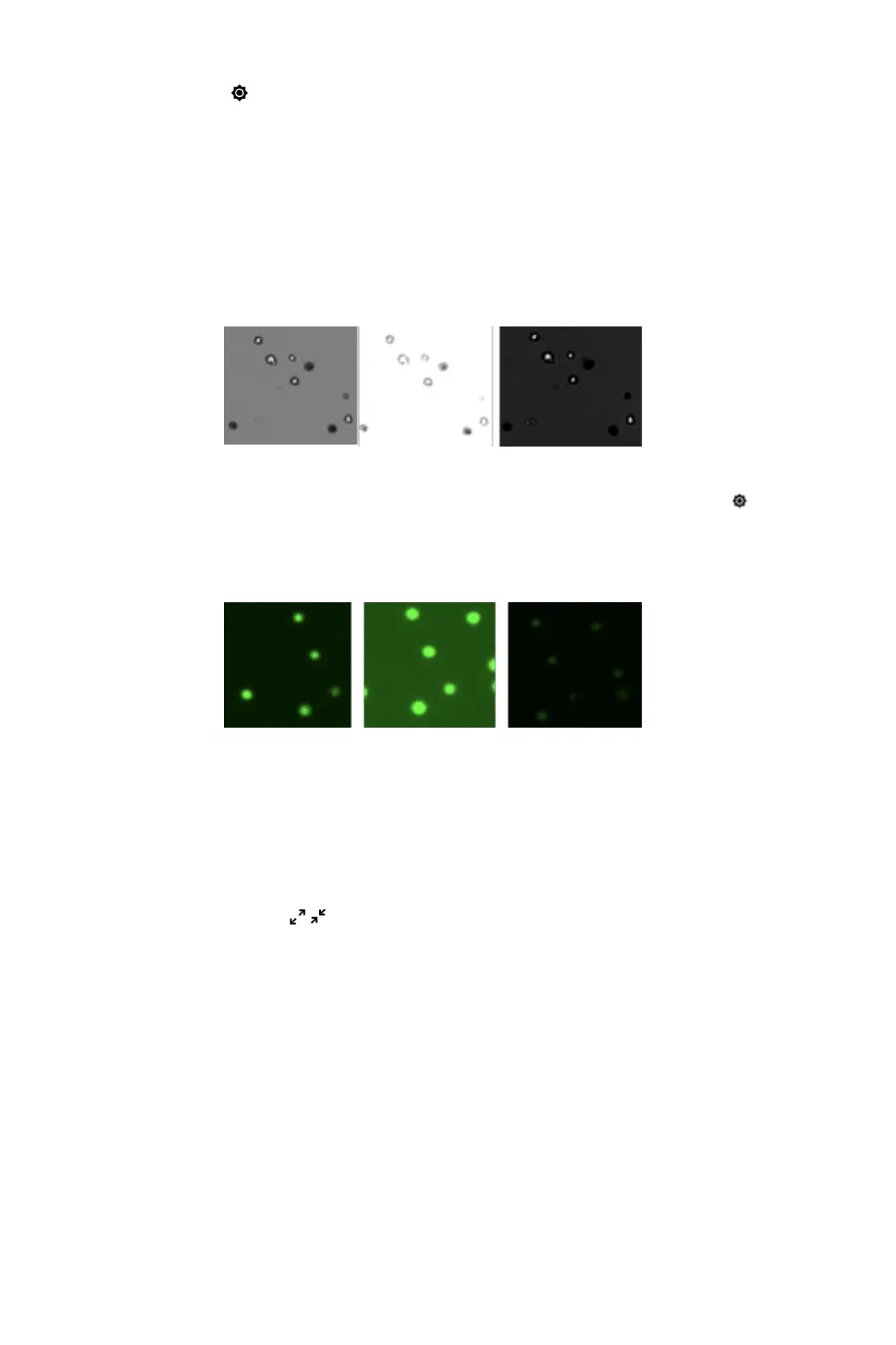 o Fluorescence Apps: Select a fluorescence channel. Touch the exposure icon to open